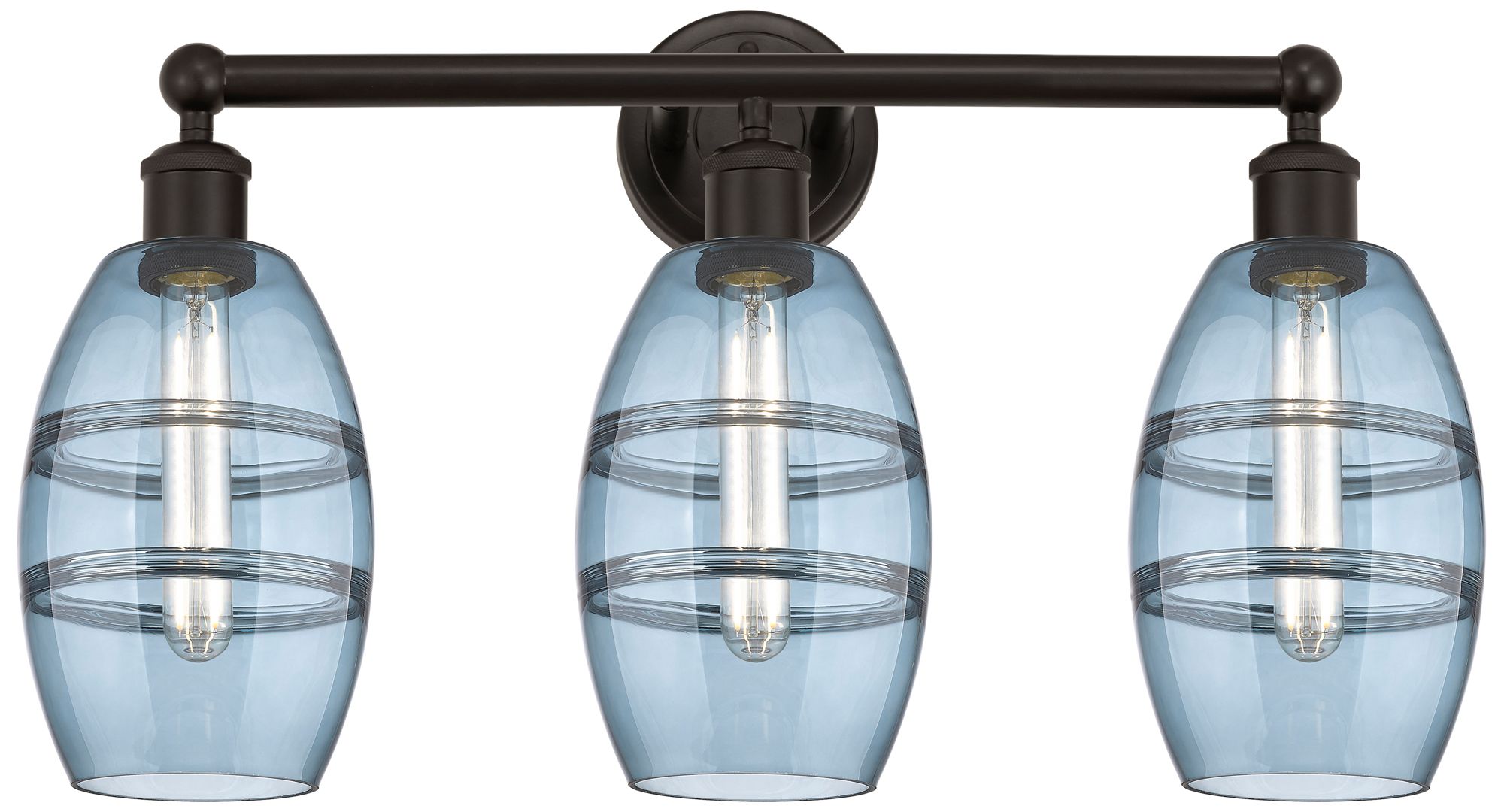 Edison Vaz 23.88"W 3 Light Oiled Bronze Bath Light w/ Princess Blue Sh