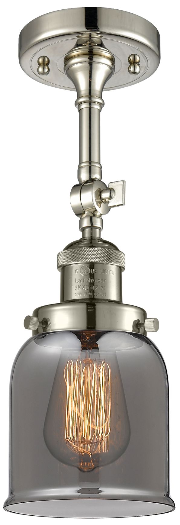 Franklin Bell 5"W Polished Nickel Adjustable Semi.Flush w/ Smoke Shade