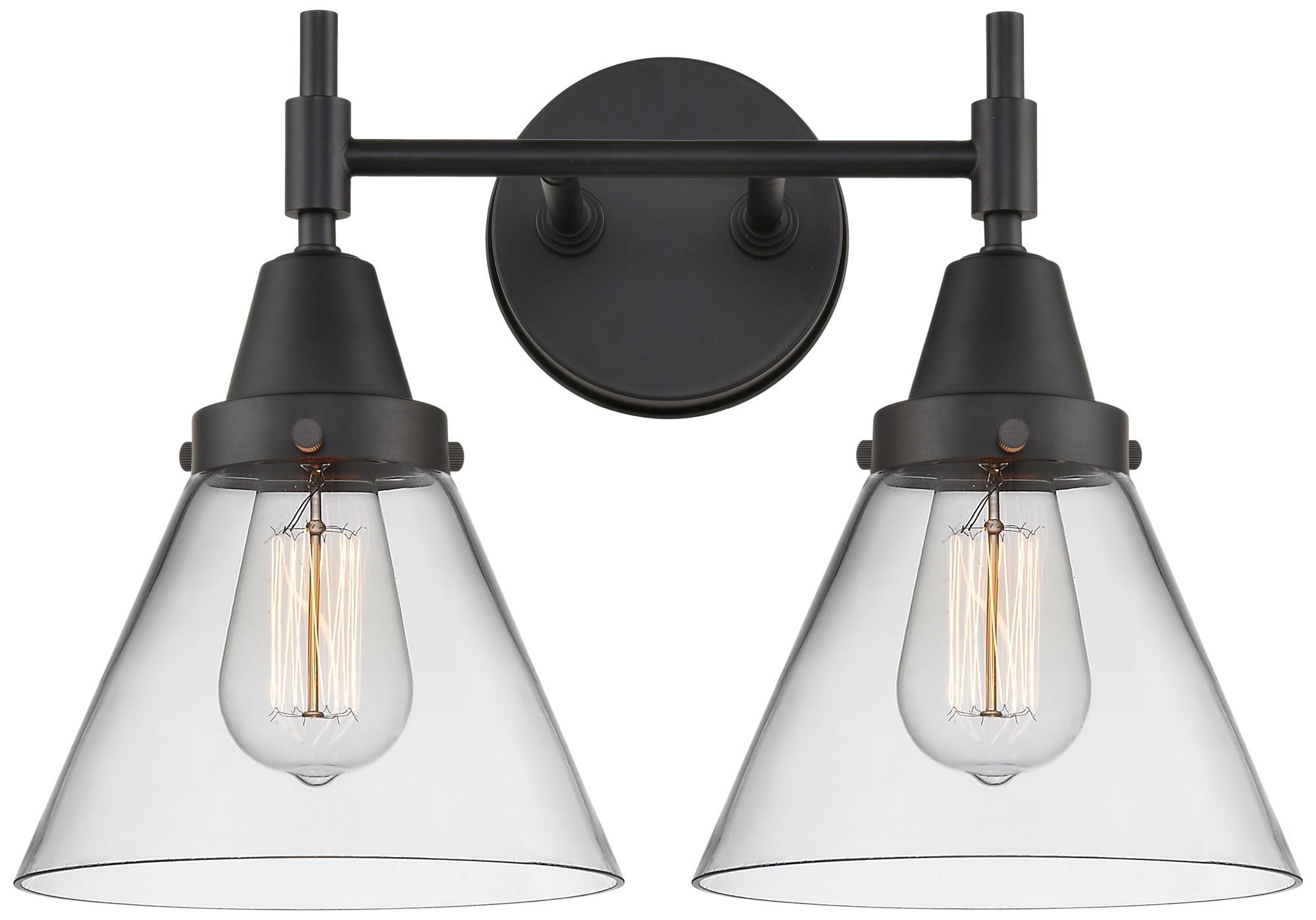 Caden Cone 16.75" Wide 2 Light Matte Black Bath Vanity Light w/ Clear