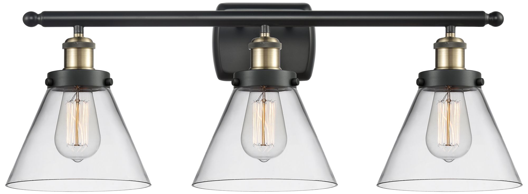 Ballston Urban Cone 28" 3 Light Black Brass Bath Light w/ Clear Shade