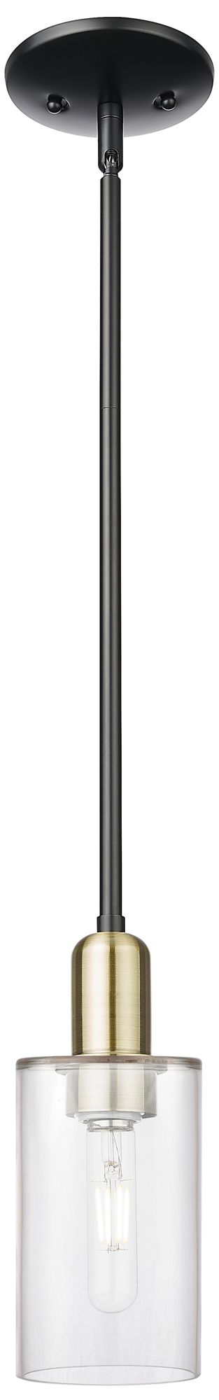 Arcadia Clymer 4"W Black Brass Stem Hung Mini Pendant w/ Clear Shade
