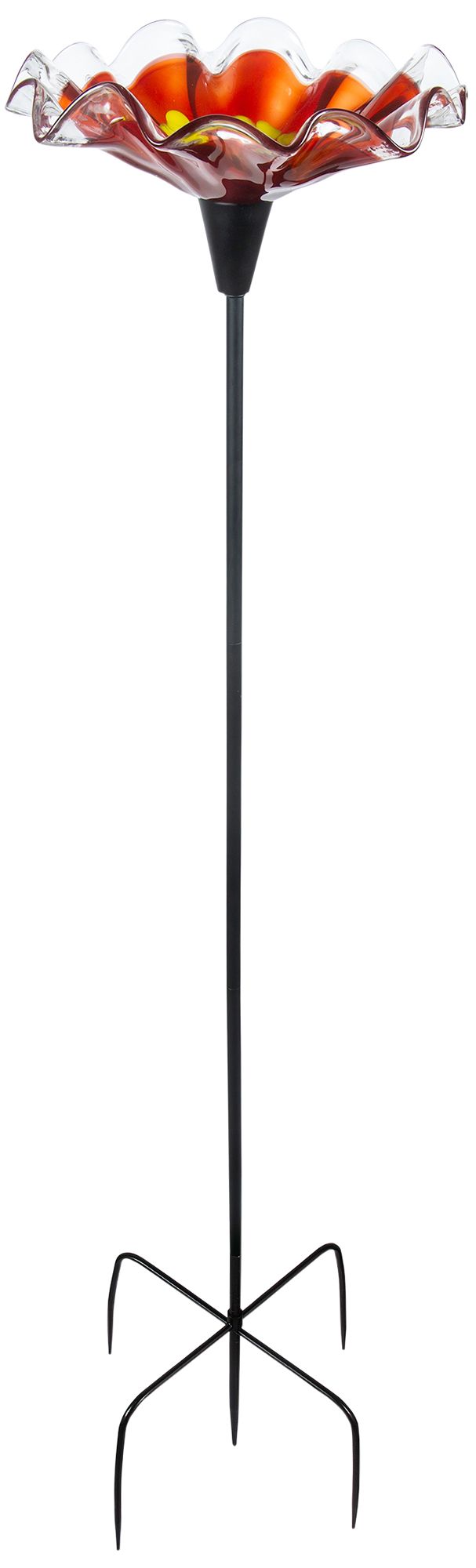 Dale Tiffany 52" Tall Fiore Bloom Red Hand Blown Glass Bird Bath / Feeder