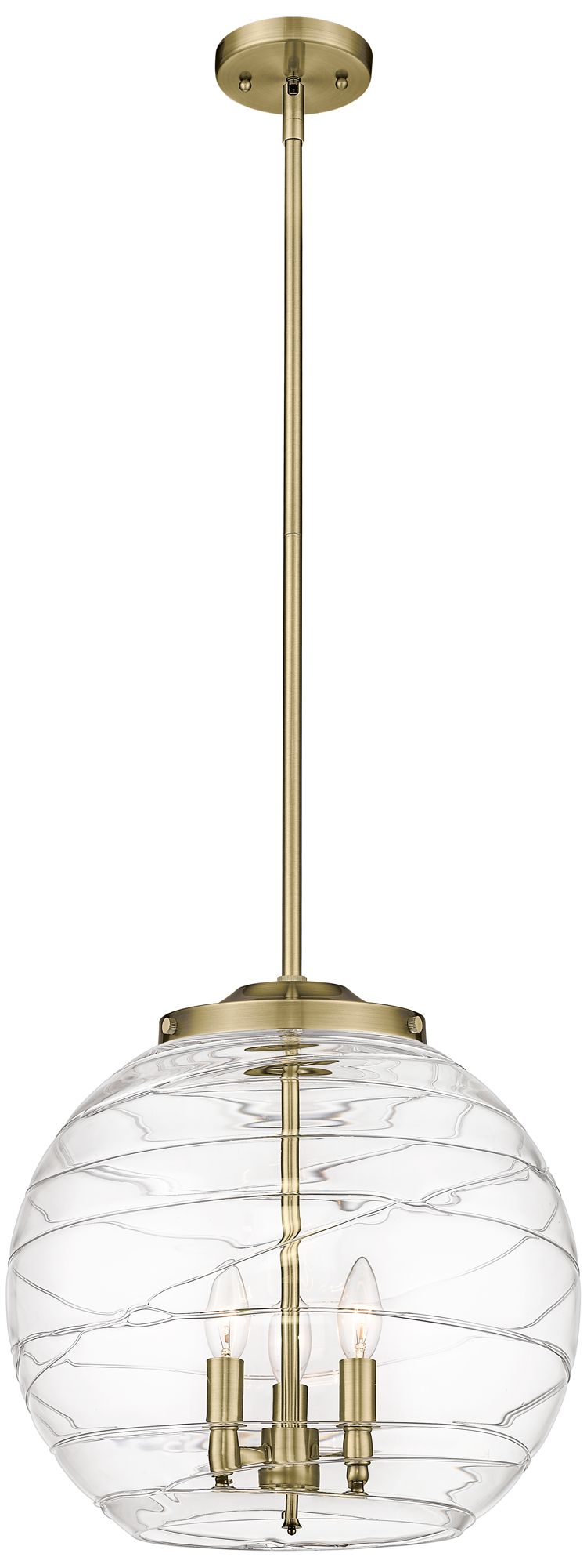 Athens 16" 3-Light Antique Brass Pendant w/ Clear Deco Swirl Shade