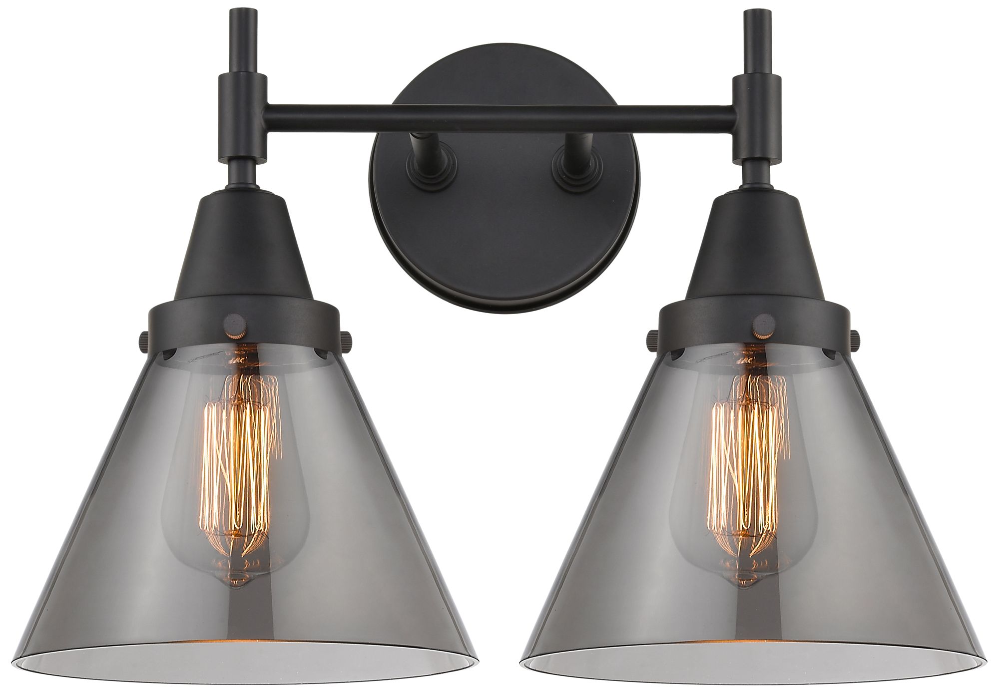 Caden Cone 16.75"W 2 Light Matte Black Bath Light w/ Smoke Shade