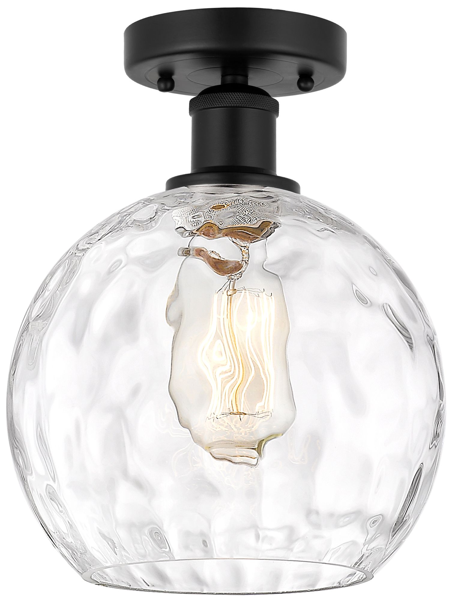 Edison Athens Water Glass 8" Semi-Flush Mount - Matte Black - Clear