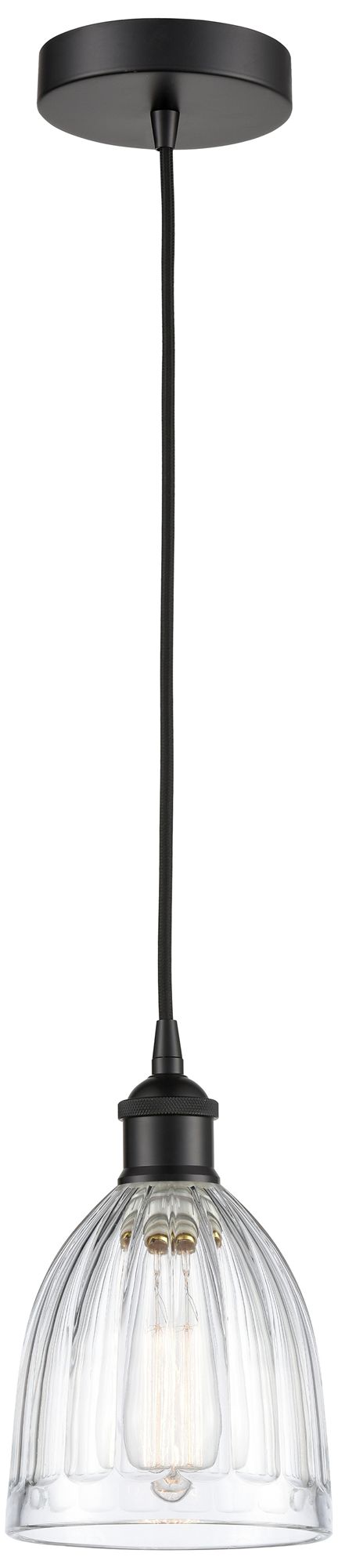 Edison Brookfield 6" Matte Black Cord Hung Mini Pendant w/ Clear Shade