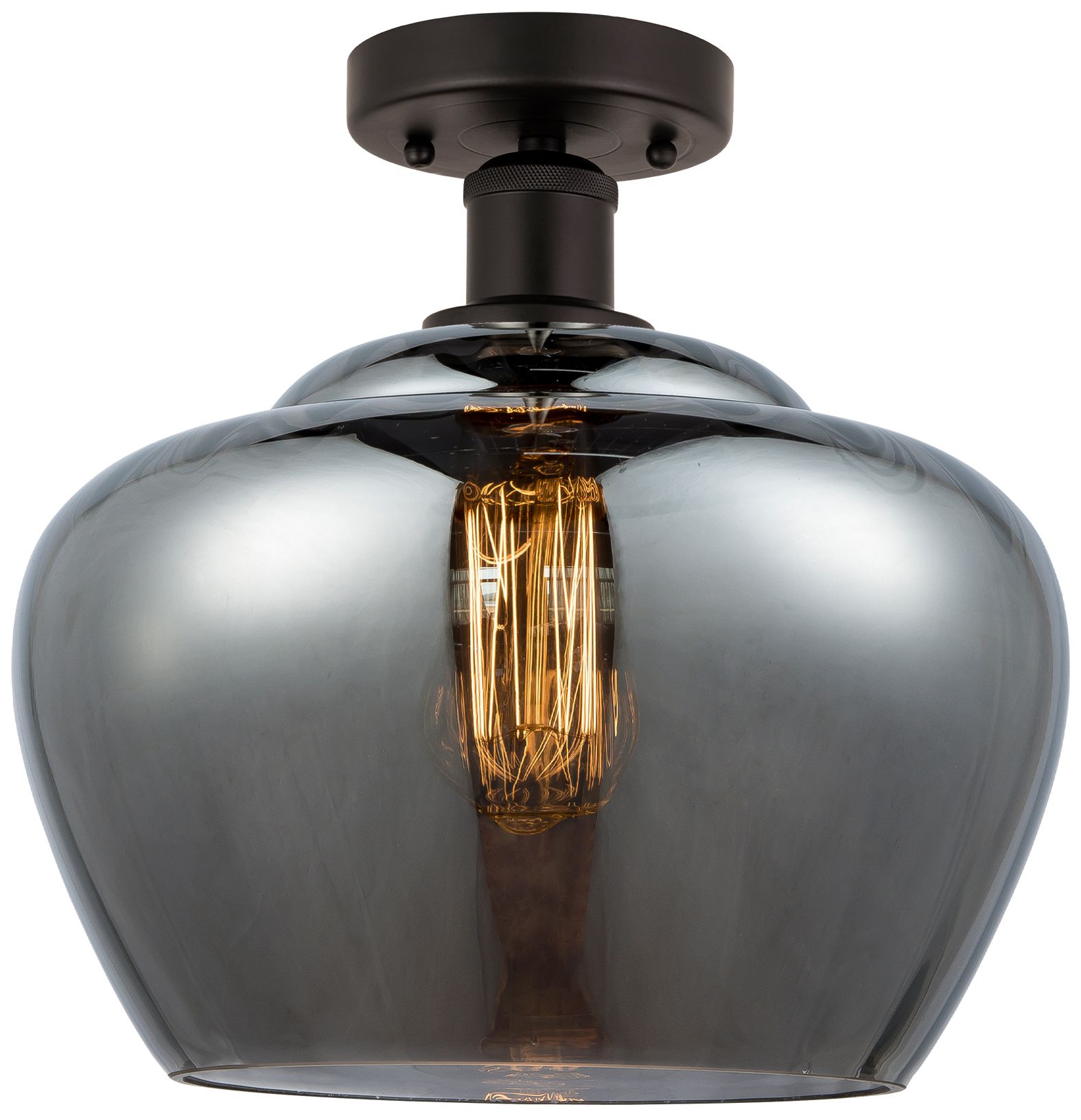 Edison Fenton 11" Oil Rubbed Bronze Semi Flush Mount w/ Plated Smoke S
