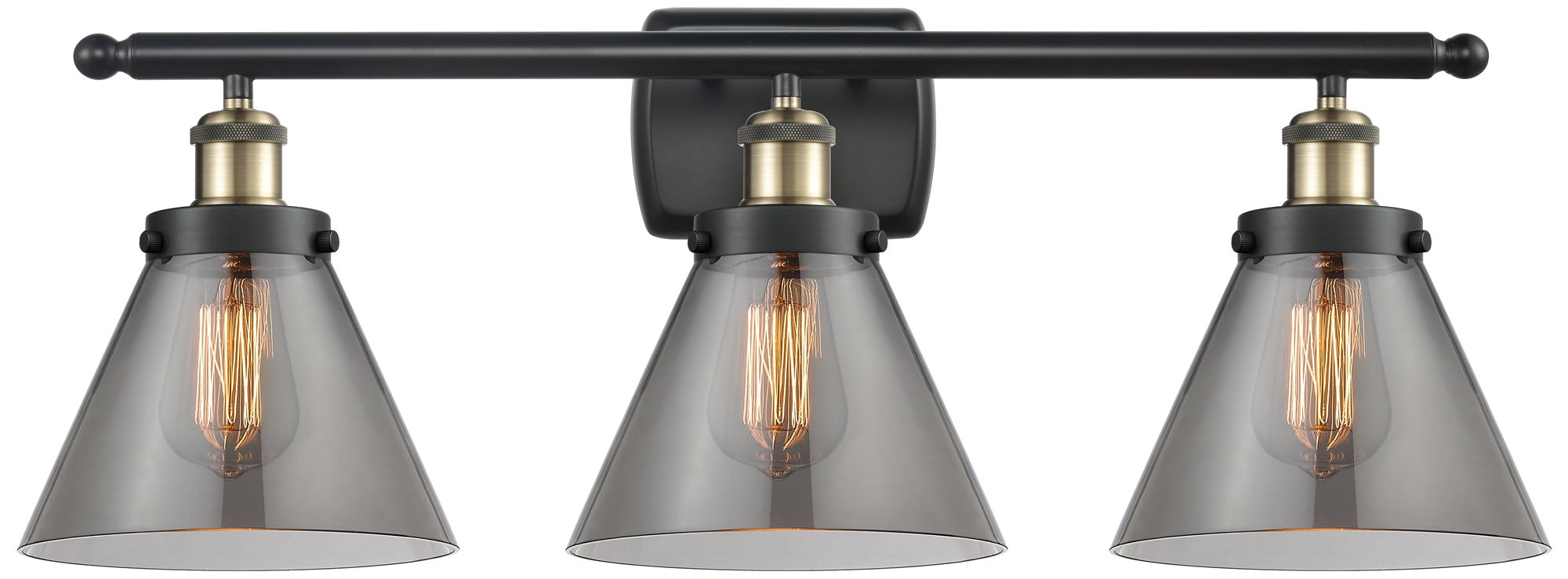 Ballston Urban Cone 28" 3 Light Black Brass Bath Light w/ Smoke Shade