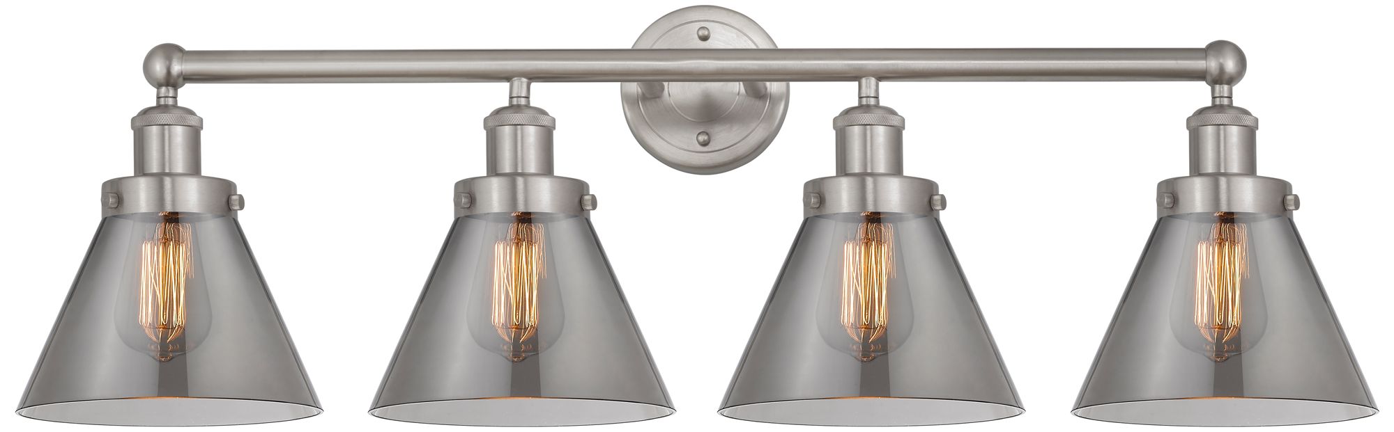 Edison Large Cone 34" 4-Light Brushed Nickel Bath Light w/ Smoke Shade