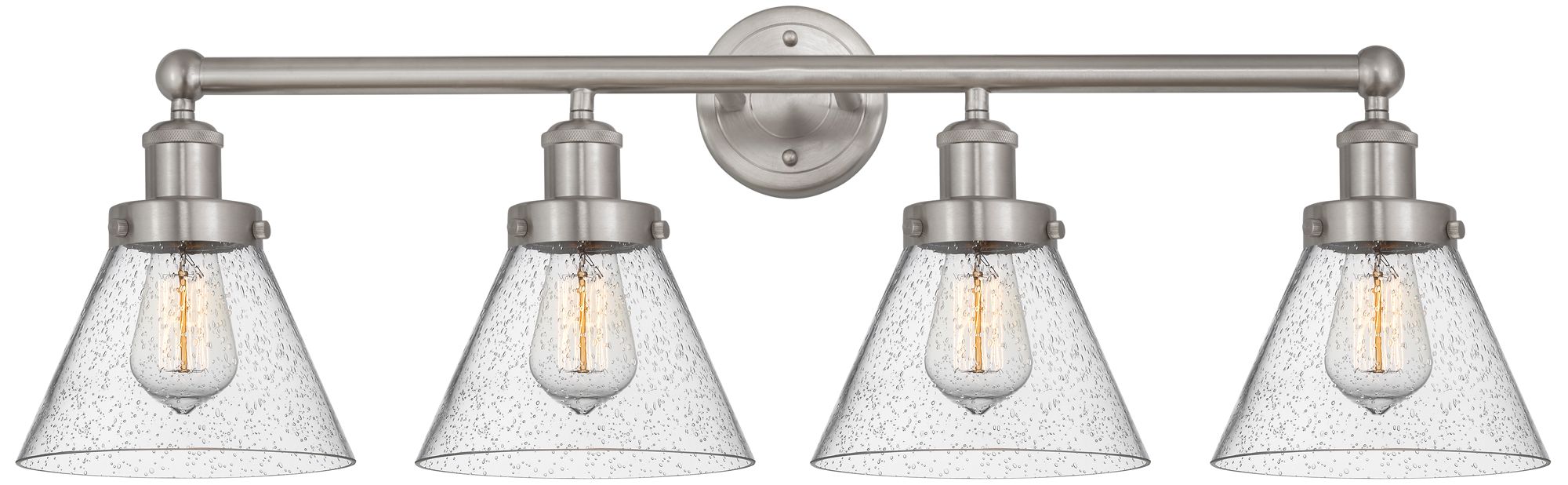 Edison Large Cone 34" 4-Light Brushed Nickel Bath Light w/ Seedy Shade