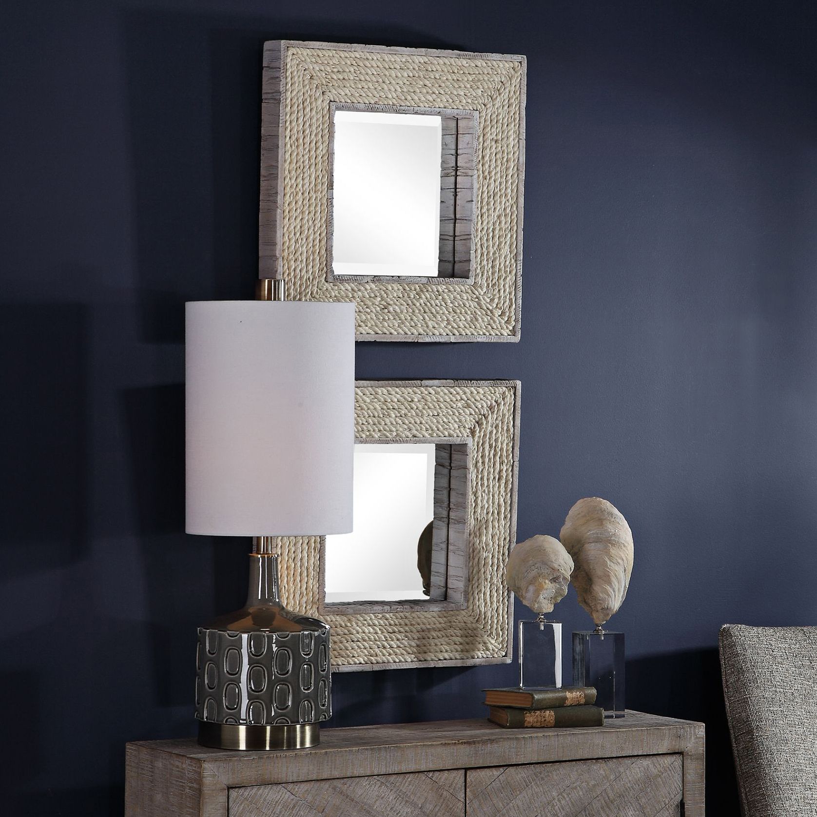 Uttermost Cambay White Wash 20" Square Wall Mirrors Set of 2