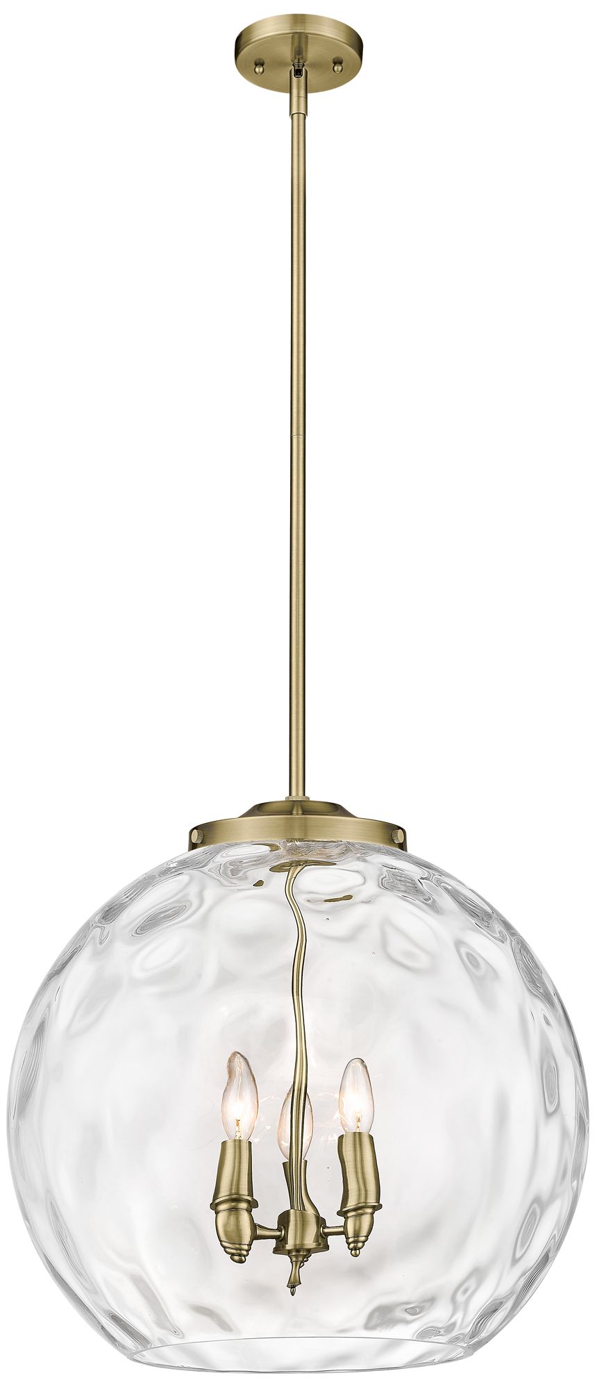 Athens 18" 3-Light Antique Brass Pendant w/ Clear Water Glass Shade
