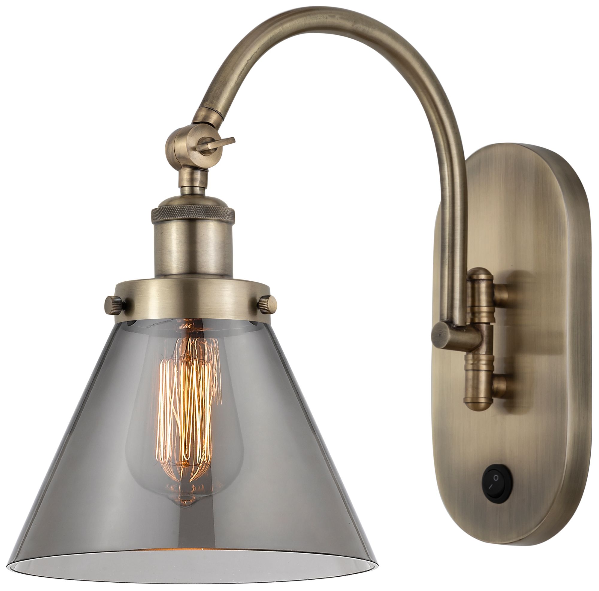 Franklin Restoration Cone 8" LED Sconce - Brass Finish - Plated Smoke