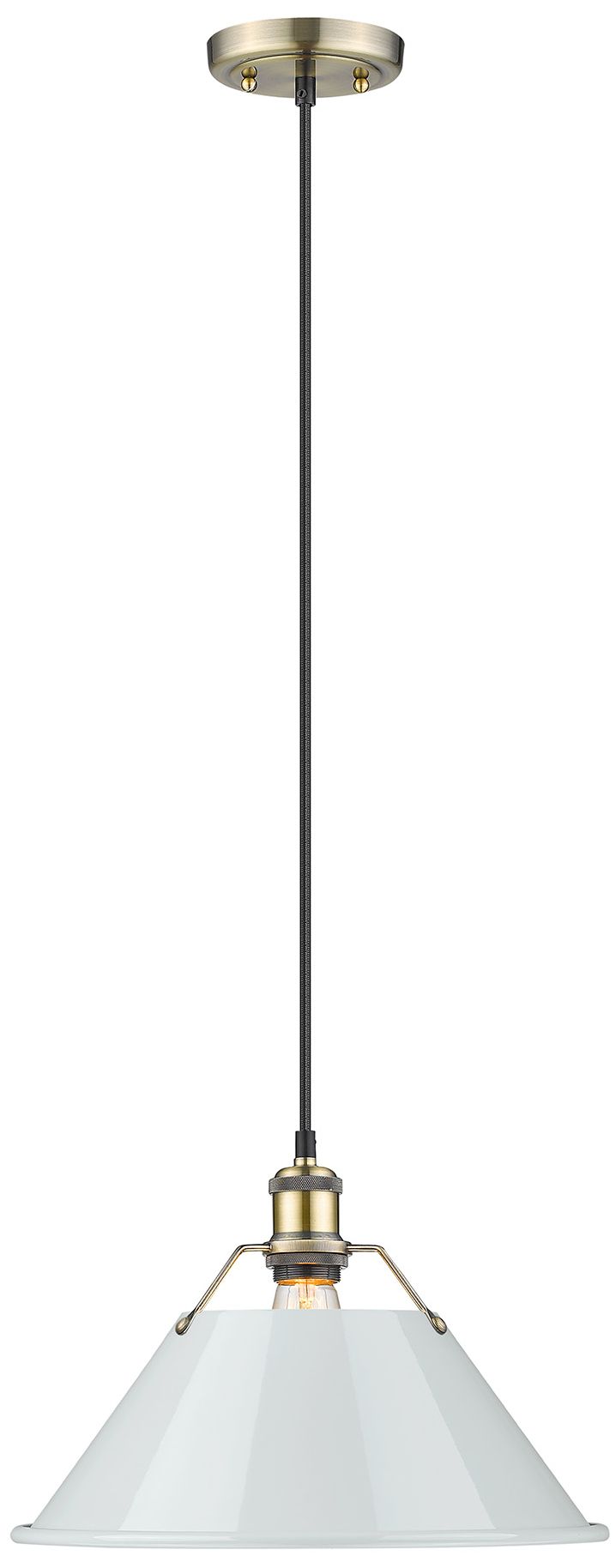 Orwell 14" Wide Pendant in Aged Brass with Dusky Blue