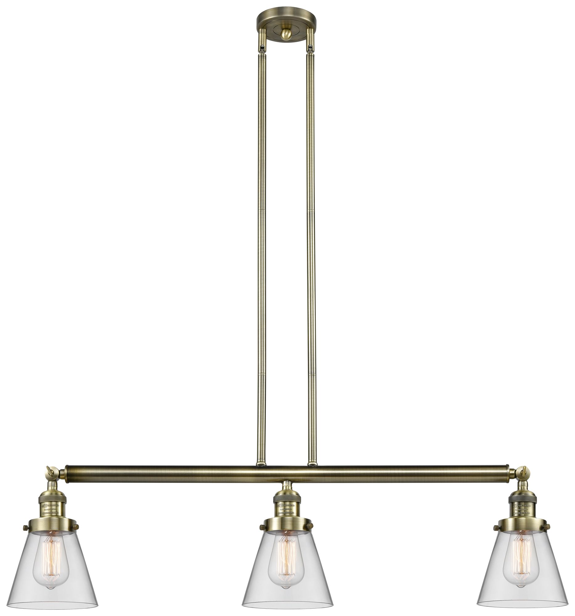 Cone 3 Light 39" LED Island Light - Antique Brass - Clear Shade