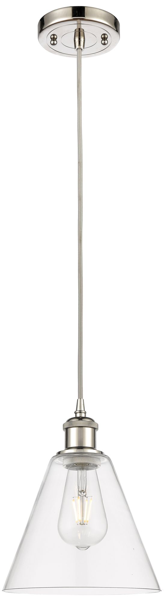 Ballston Berkshire 8" Mini Pendant - Polished Nickel - Clear Shade