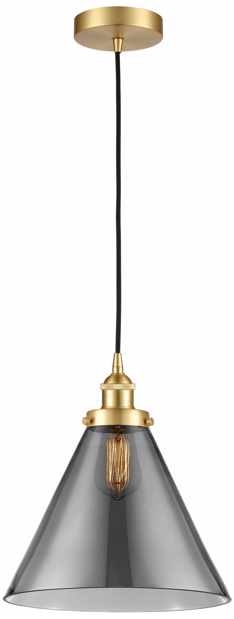 Cone 12" Satin Gold Mini Pendant w/ Plated Smoke Shade