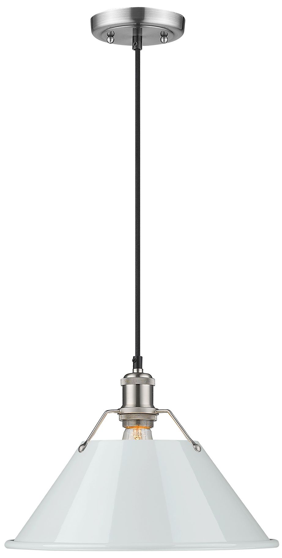 Orwell 14" Wide Pendant in Pewter with Dusky Blue