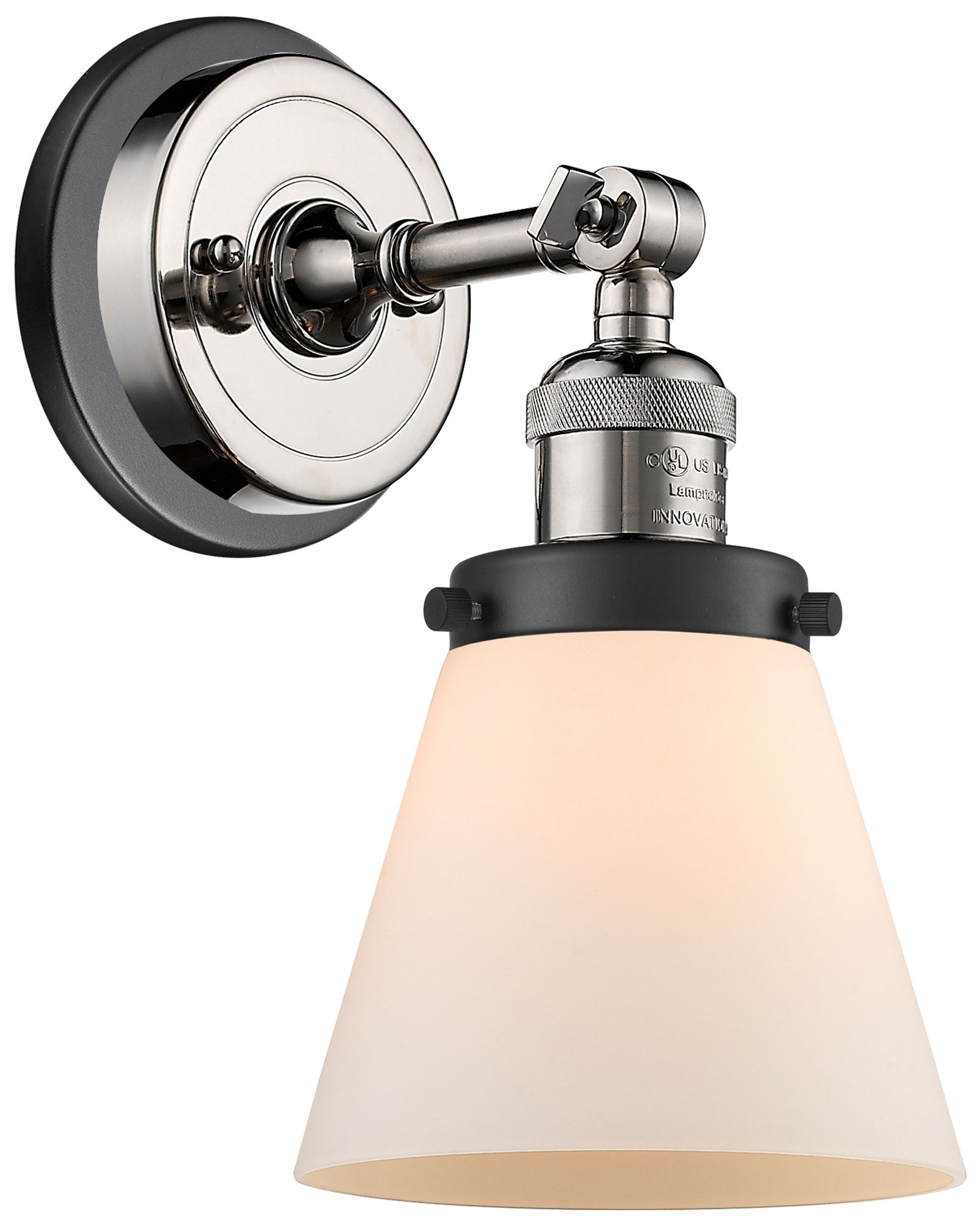 Franklin Cone 10"H Black Accented Polished Nickel Sconce w/ White Shad