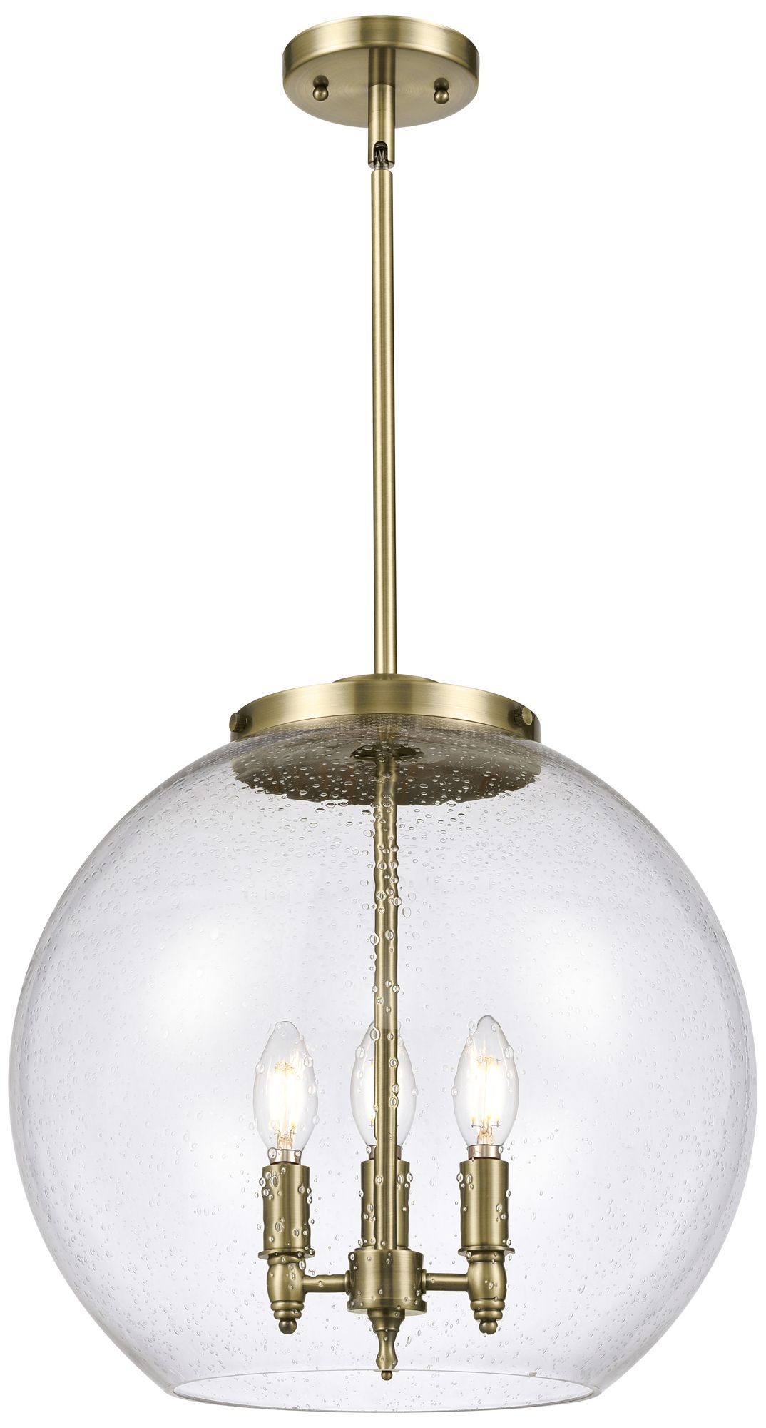 Athens 16" 3-Light Antique Brass Pendant w/ Seedy Shade