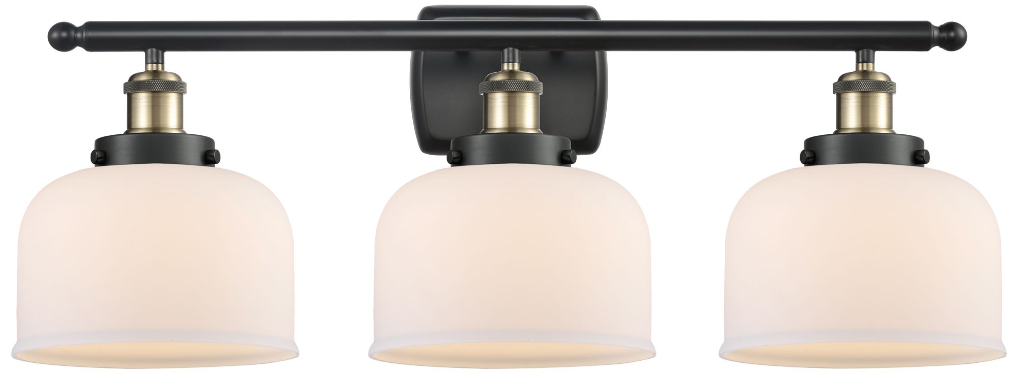 Ballston Urban Bell 28" 3 Light Black Brass LED Bath Light w/ White Sh
