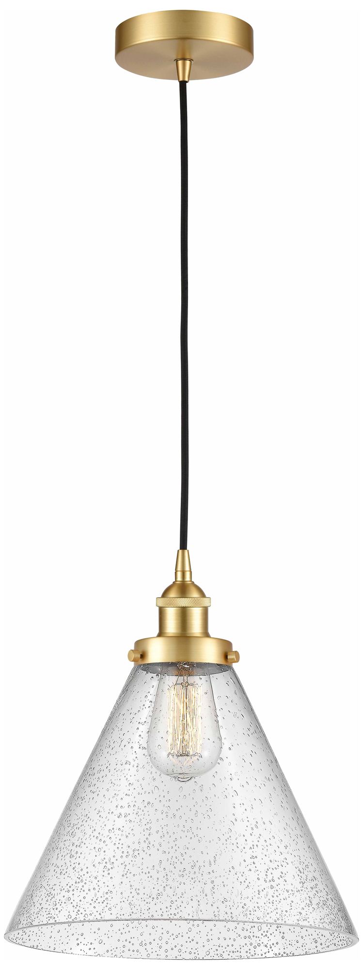 Cone 12" Satin Gold Mini Pendant w/ Seedy Shade