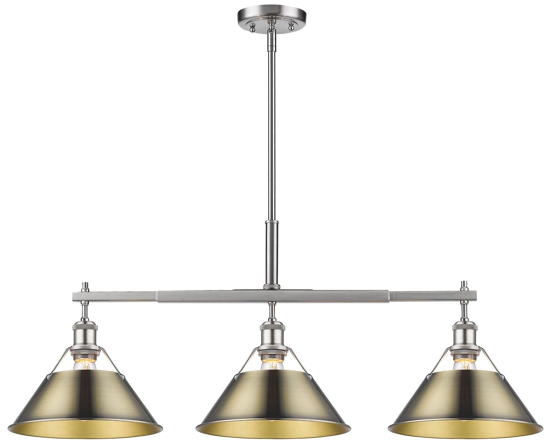 Orwell 35 3/4" Wide 3-Light Linear Pendant in Pewter with Aged Brass