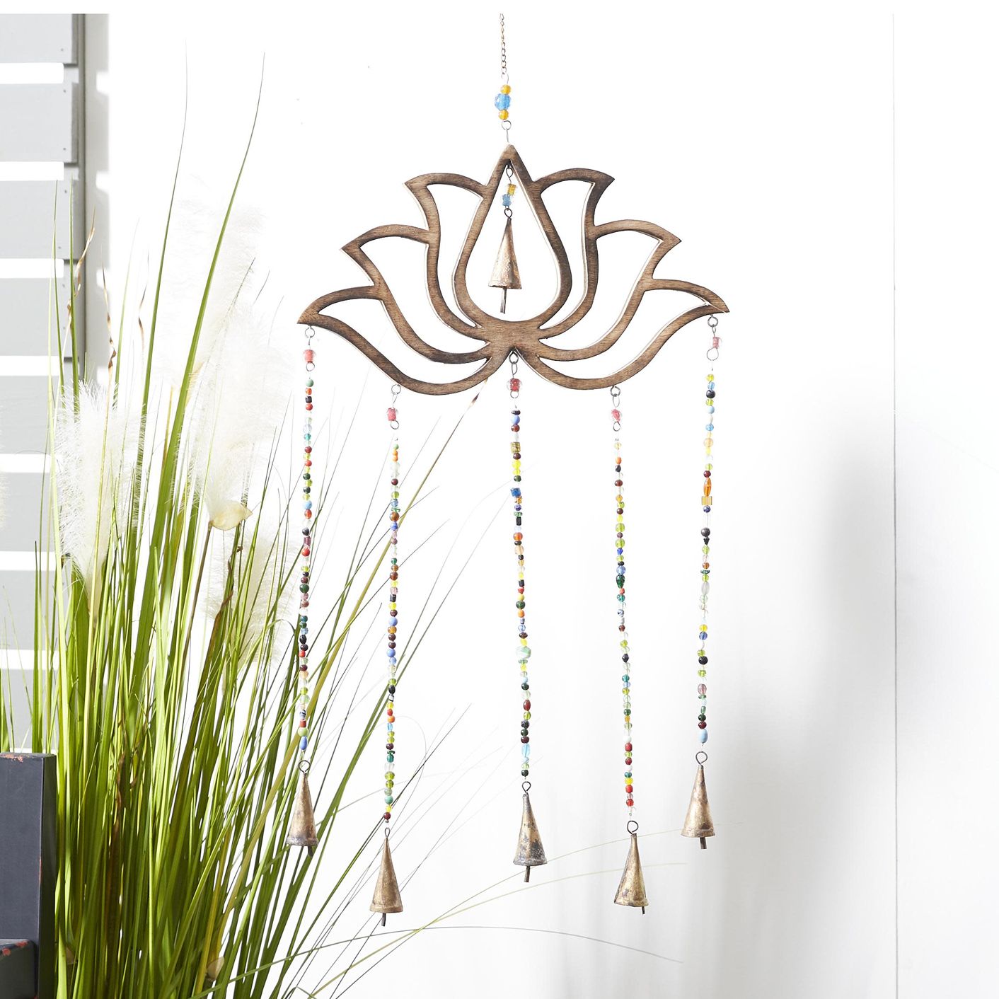 Brown Mango Wood Eclectic Windchime, 15" x 1" x 32"