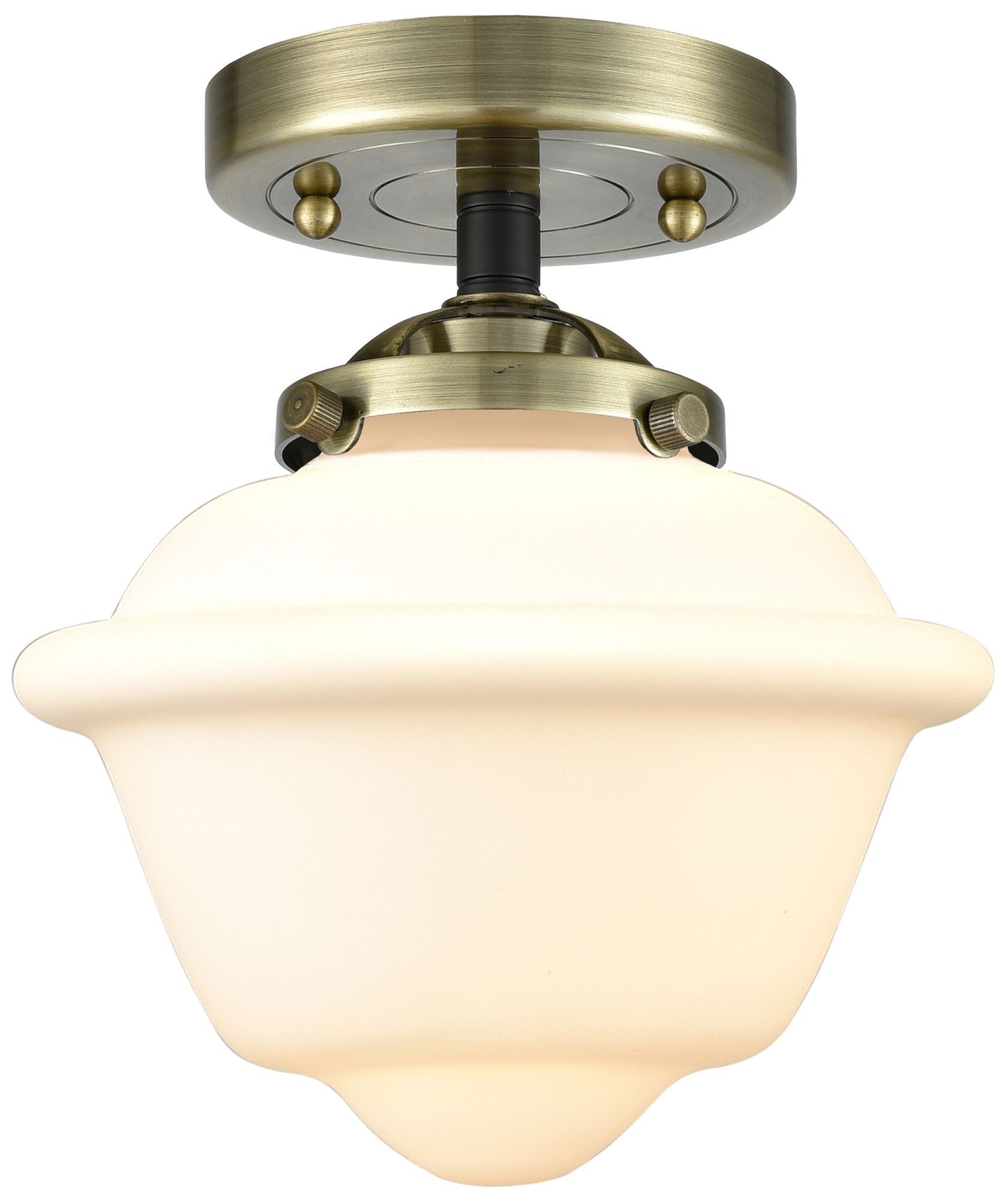 Nouveau Oxford 7.5"W Black Brass Semi.Flush Mount w/ Matte White Shade