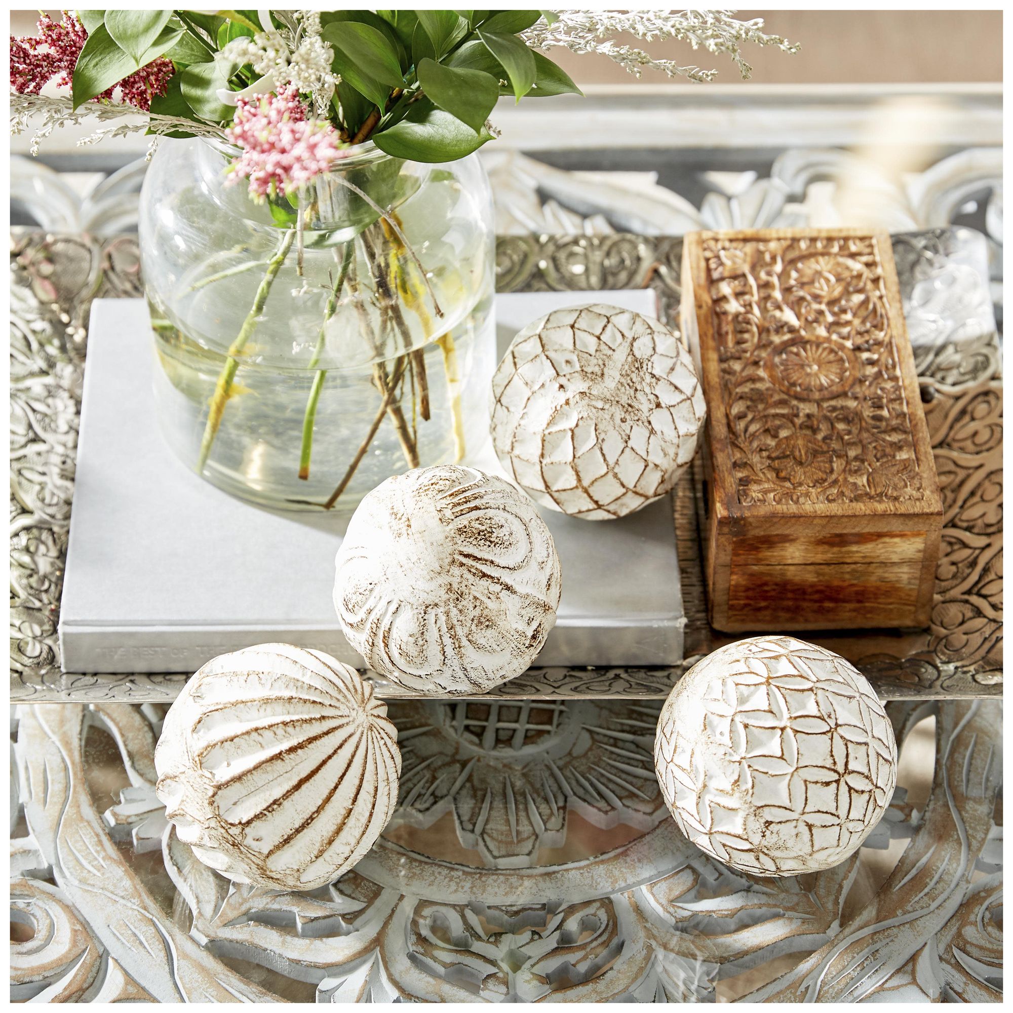 White Ceramic Coastal Orbs & Vase Filler, S/4 4"W, 4"H