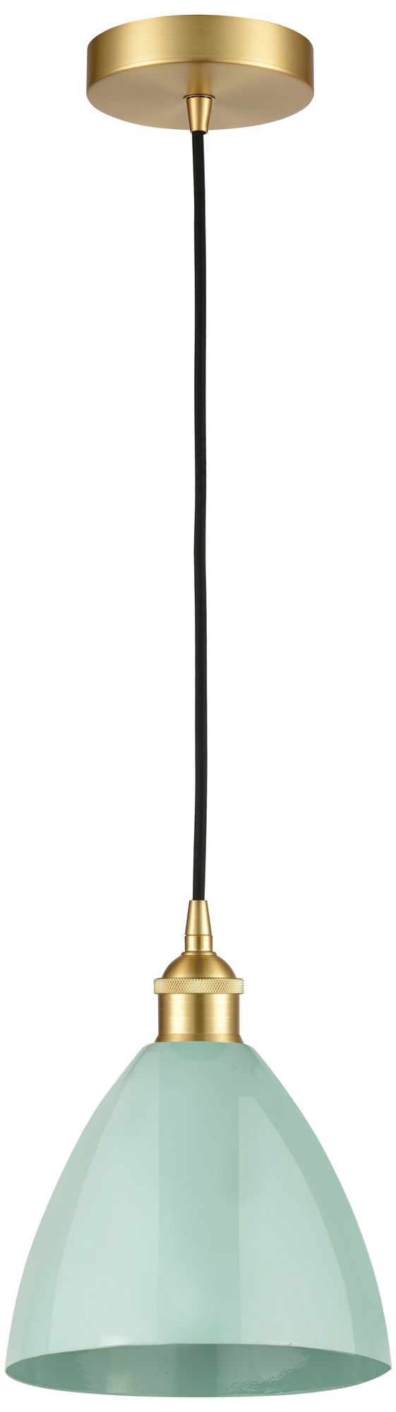 Plymouth Dome 7.5" Wide Satin Gold Corded Mini Pendant w/ Seafoam Shad