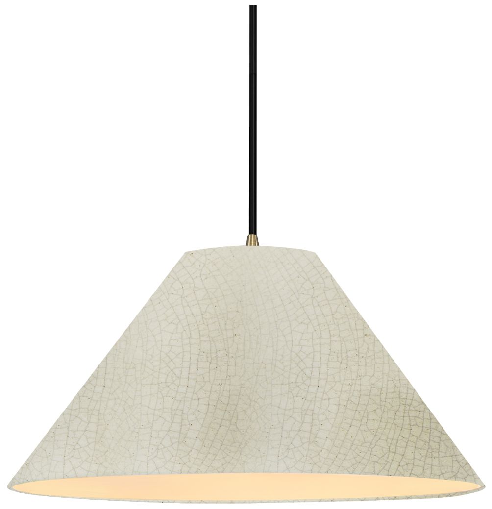 Radiance Avola 15"W White Crackle, Antique Brass LED Pendant - Rigid Stem