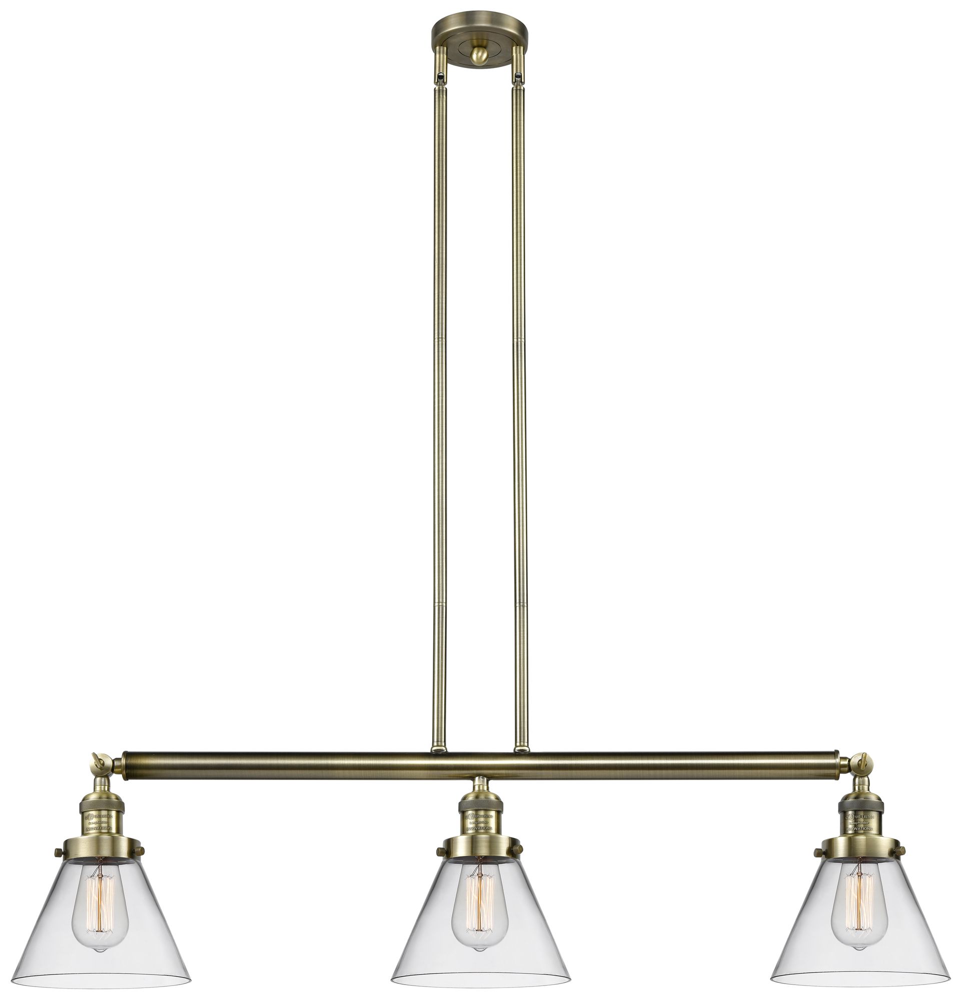 Cone 3 Light 40" LED Island Light - Antique Brass - Clear Shade