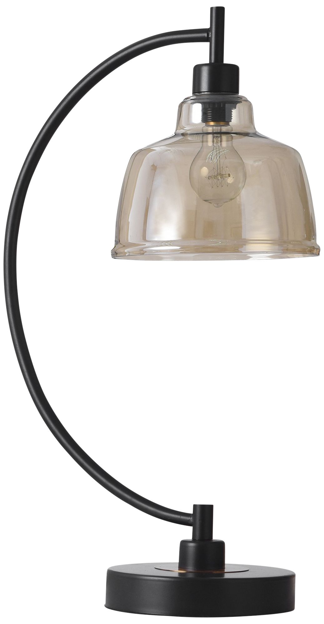 Black Water 26" Black Steel Desk Lamp with Amber Glass Shade