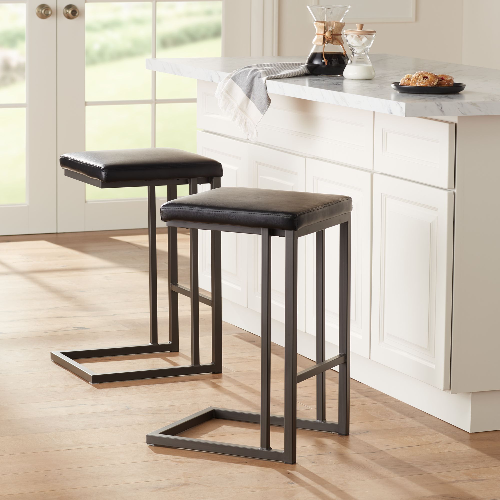 Boone 26" Black Faux Leather Counter Stool Set of 2