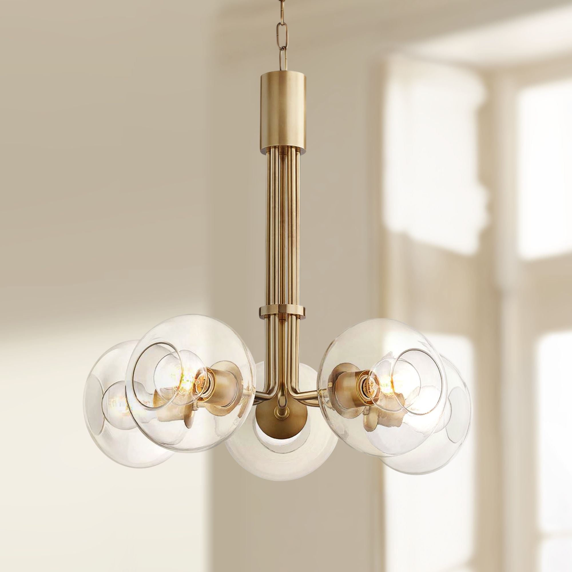 Mitzi Margot 25" Wide Aged Brass w/ Glass 5-Light Chandelier
