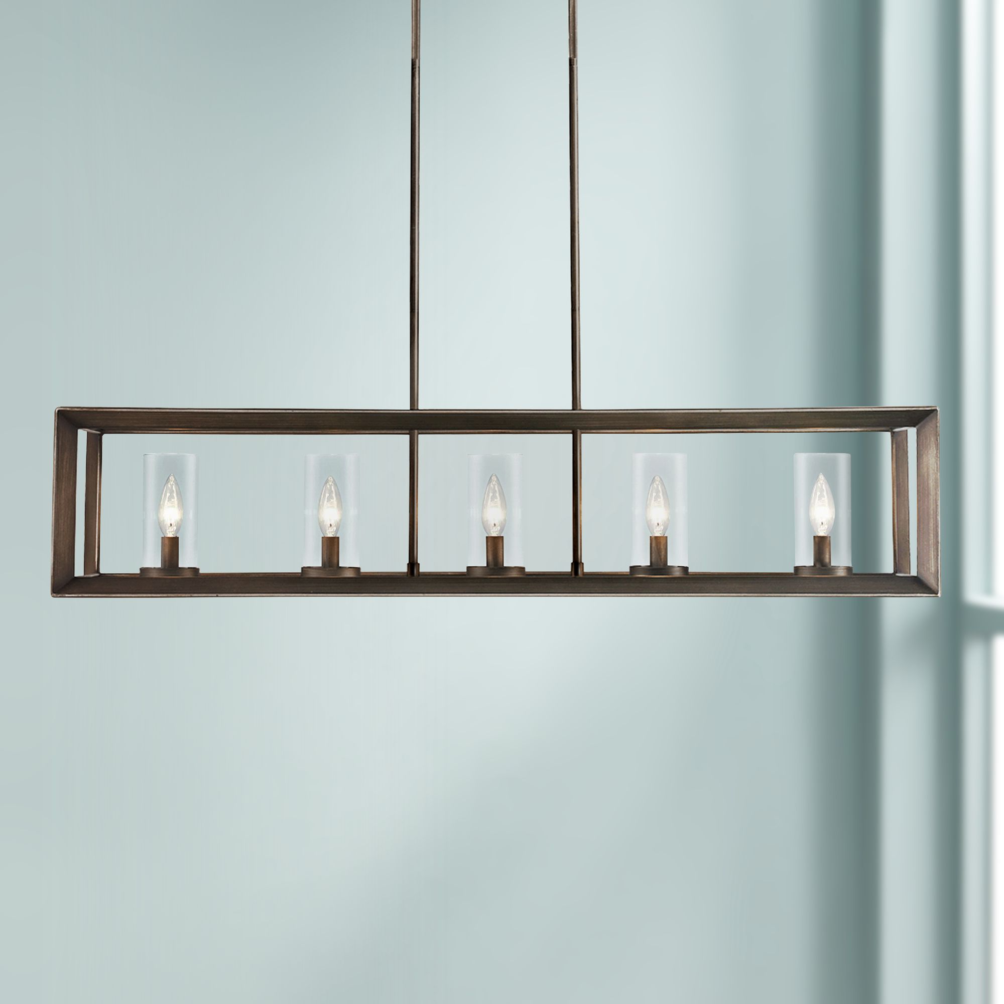 Golden Lighting Smyth 41" Wide Bronze Linear Cage Chandelier