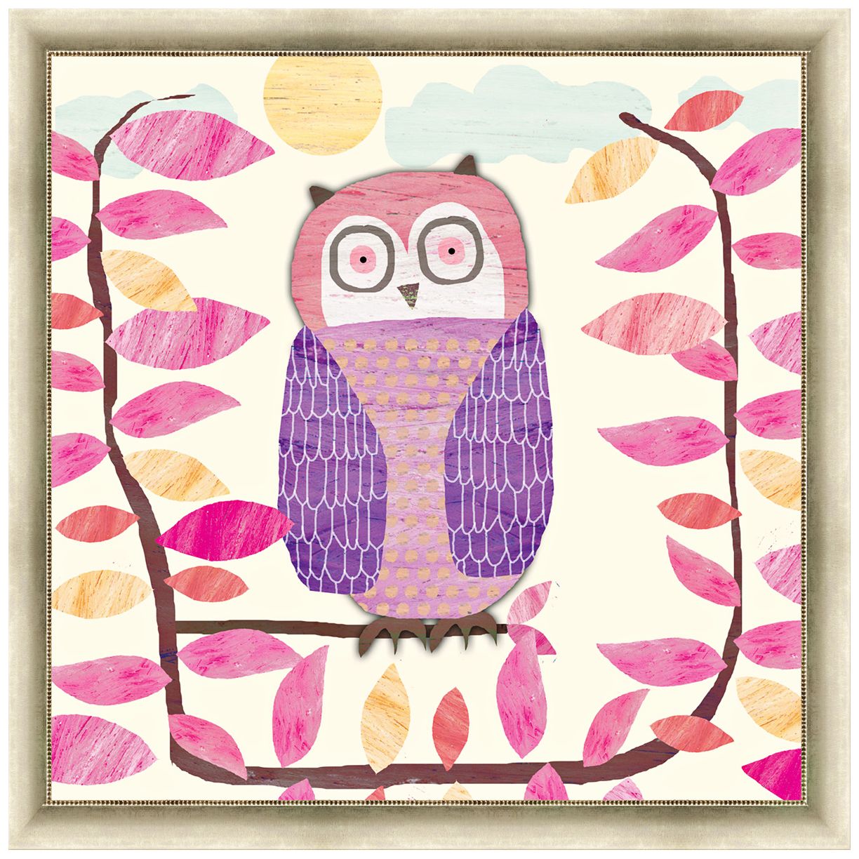 Pink and Purple Owl 24" Square Light Gold Framed Canvas Art