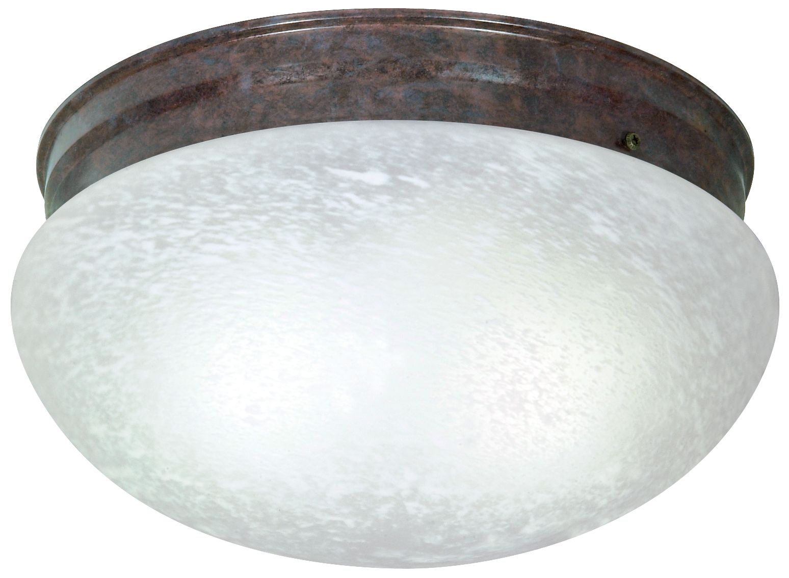 2 Light - 12" - Flush Mount - Large Alabaster Mushroom - Old Bronze Fi