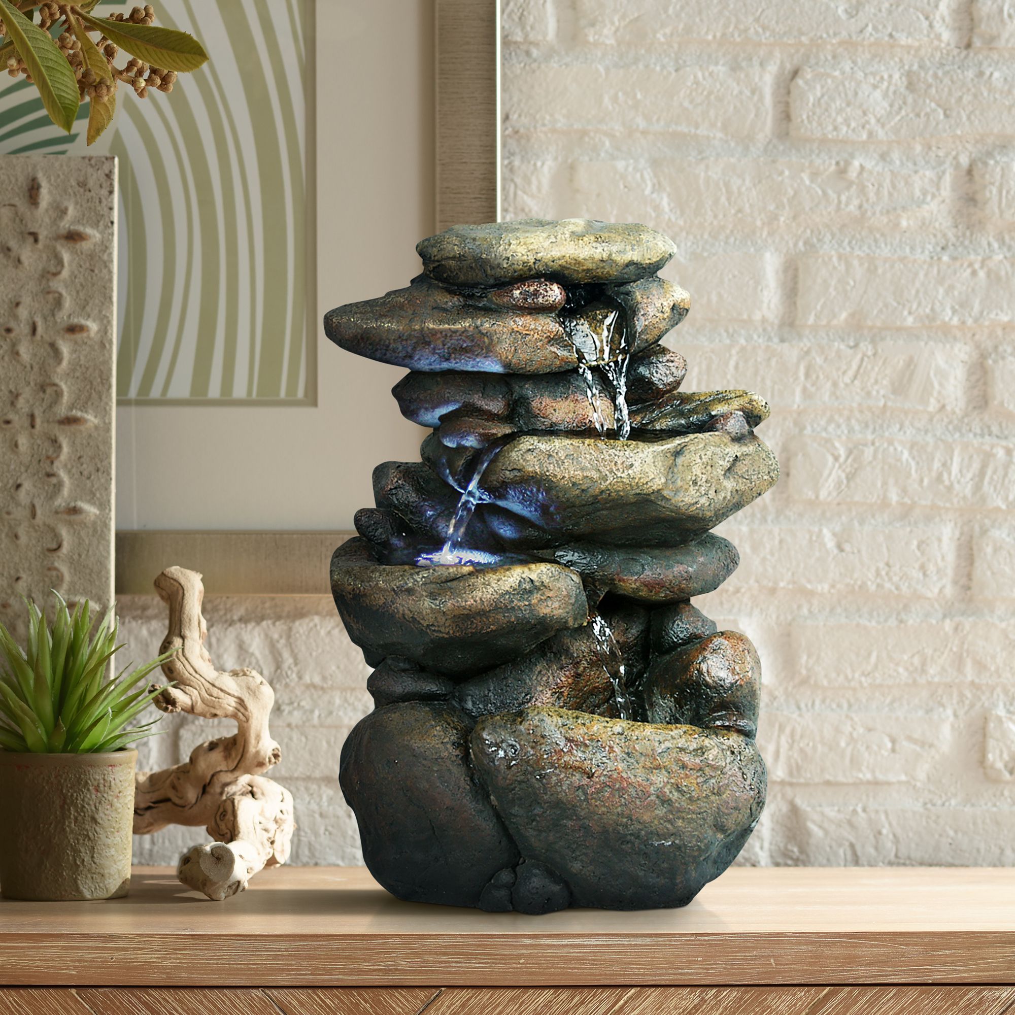 Rock Formation 3-Tier LED 11" High Tabletop Fountain
