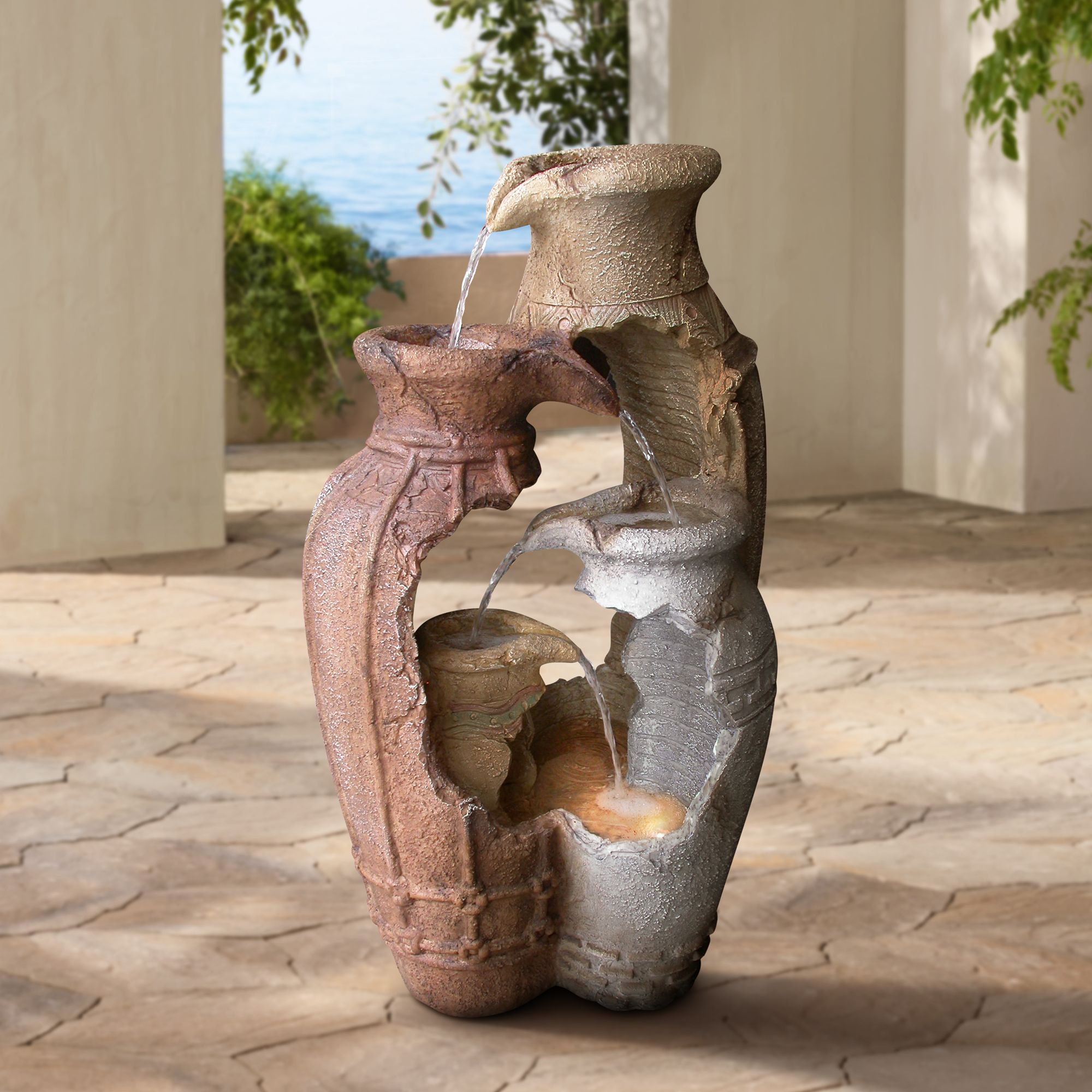 Distressed Urn Pottery 39" High Rustic Garden Fountain