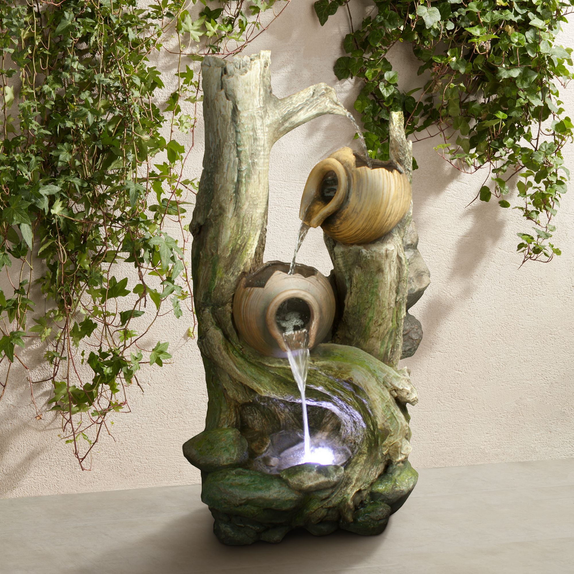Rainforest 39" High Waterfall Tiered Jars LED Floor Fountain