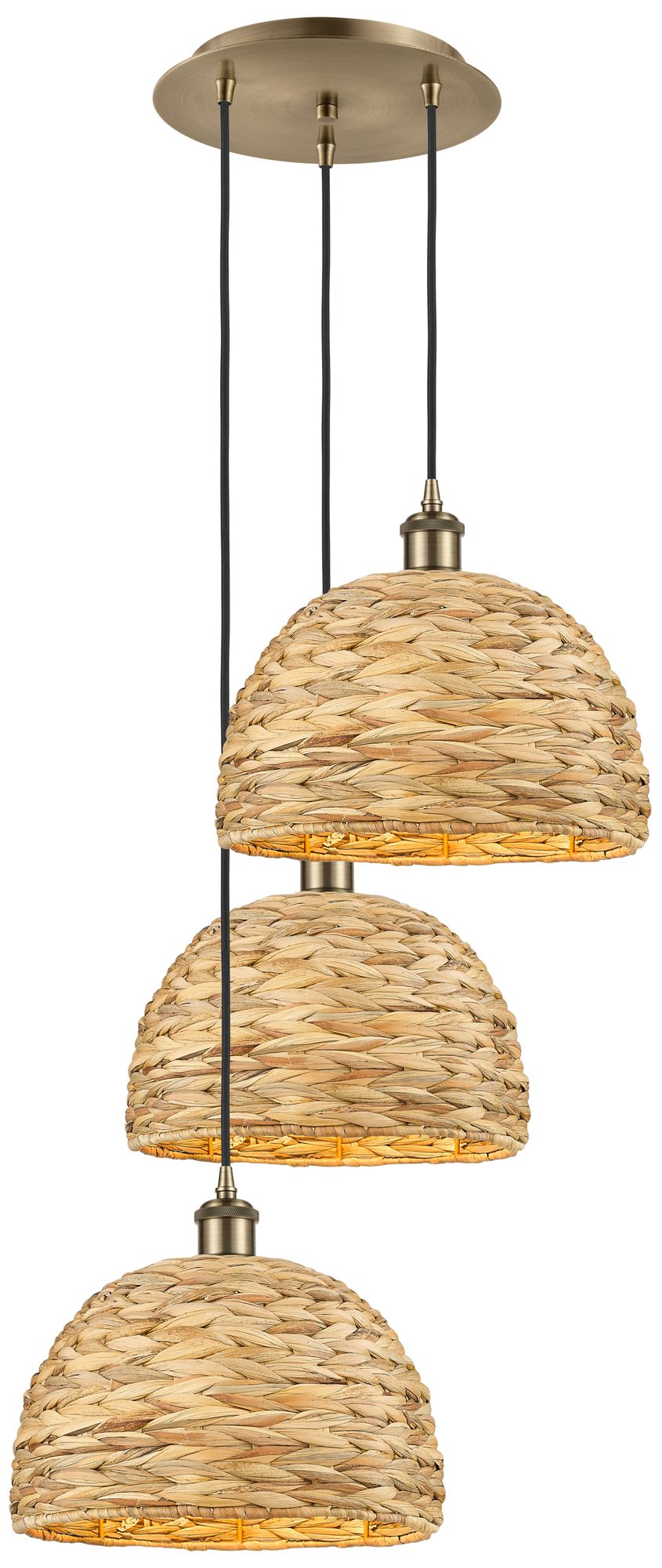 Woven Rattan 18.5"W 3 Light Antique Brass Corded Multi Pendant w/ 10&q