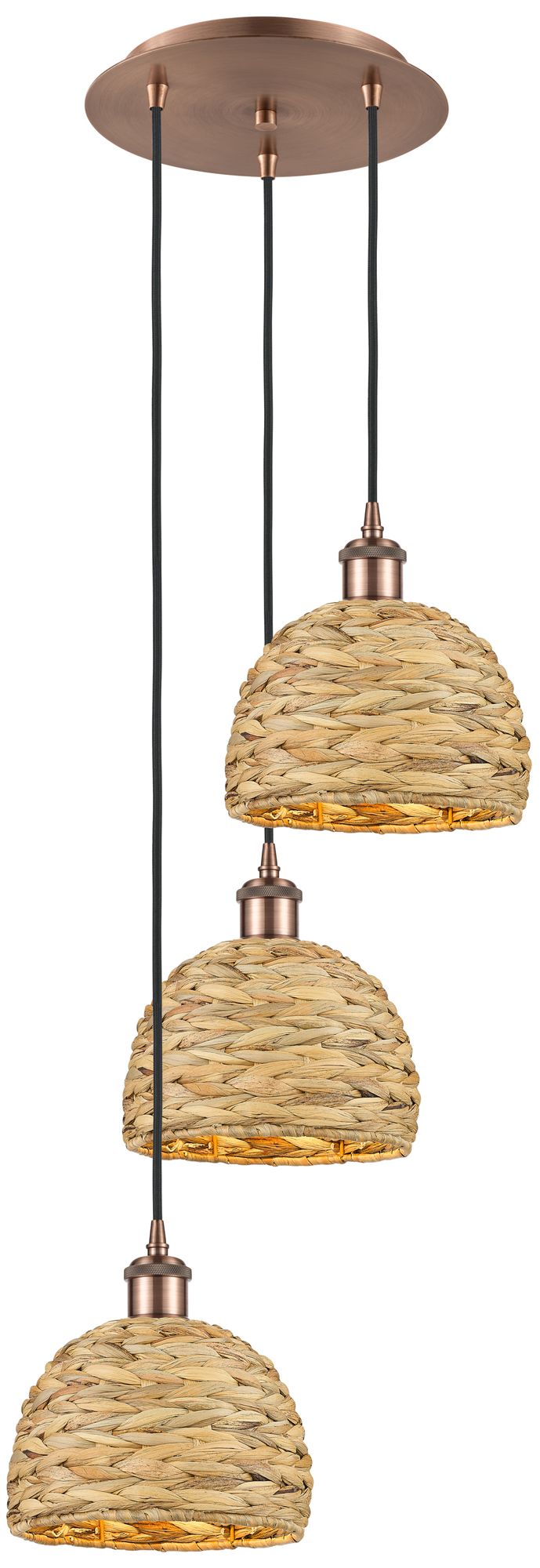 Woven Rattan 18.5"W 3 Light Copper Corded Multi Pendant