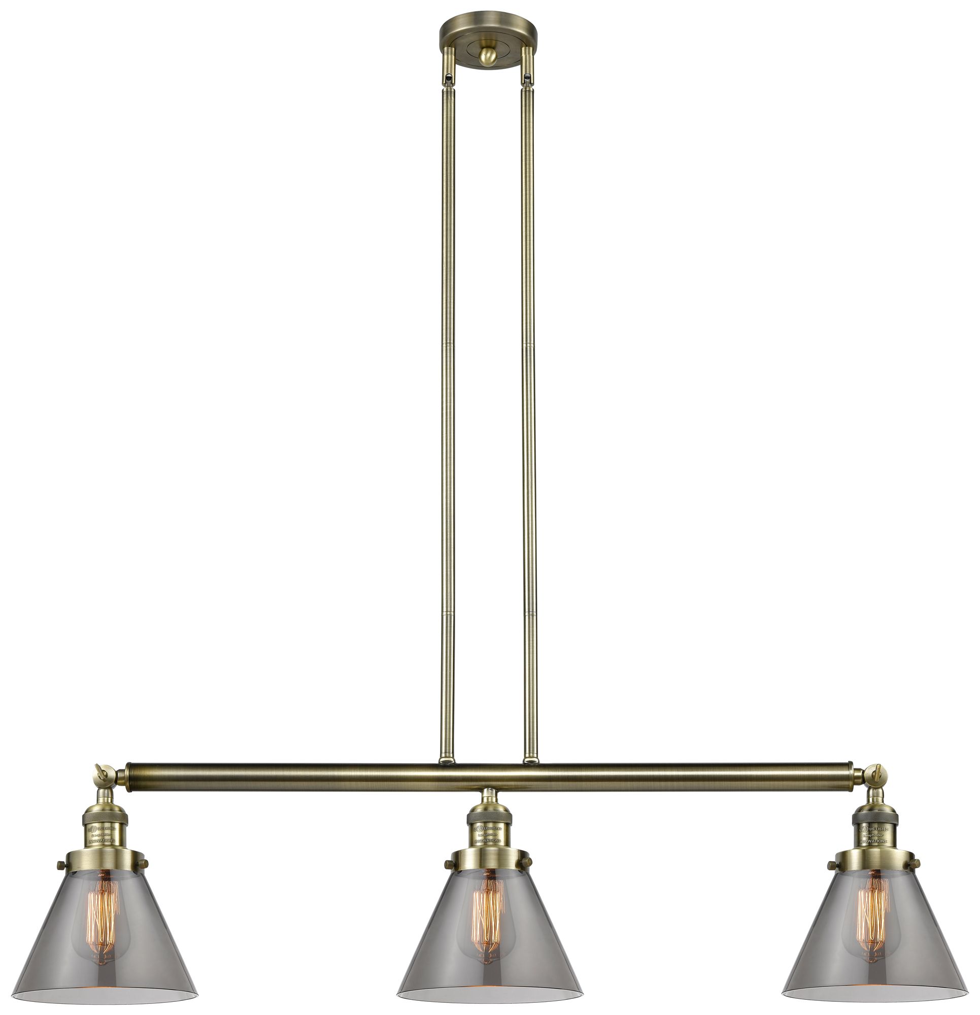 Cone 3 Light 40" LED Island Light - Antique Brass - Plated Smoke Shad