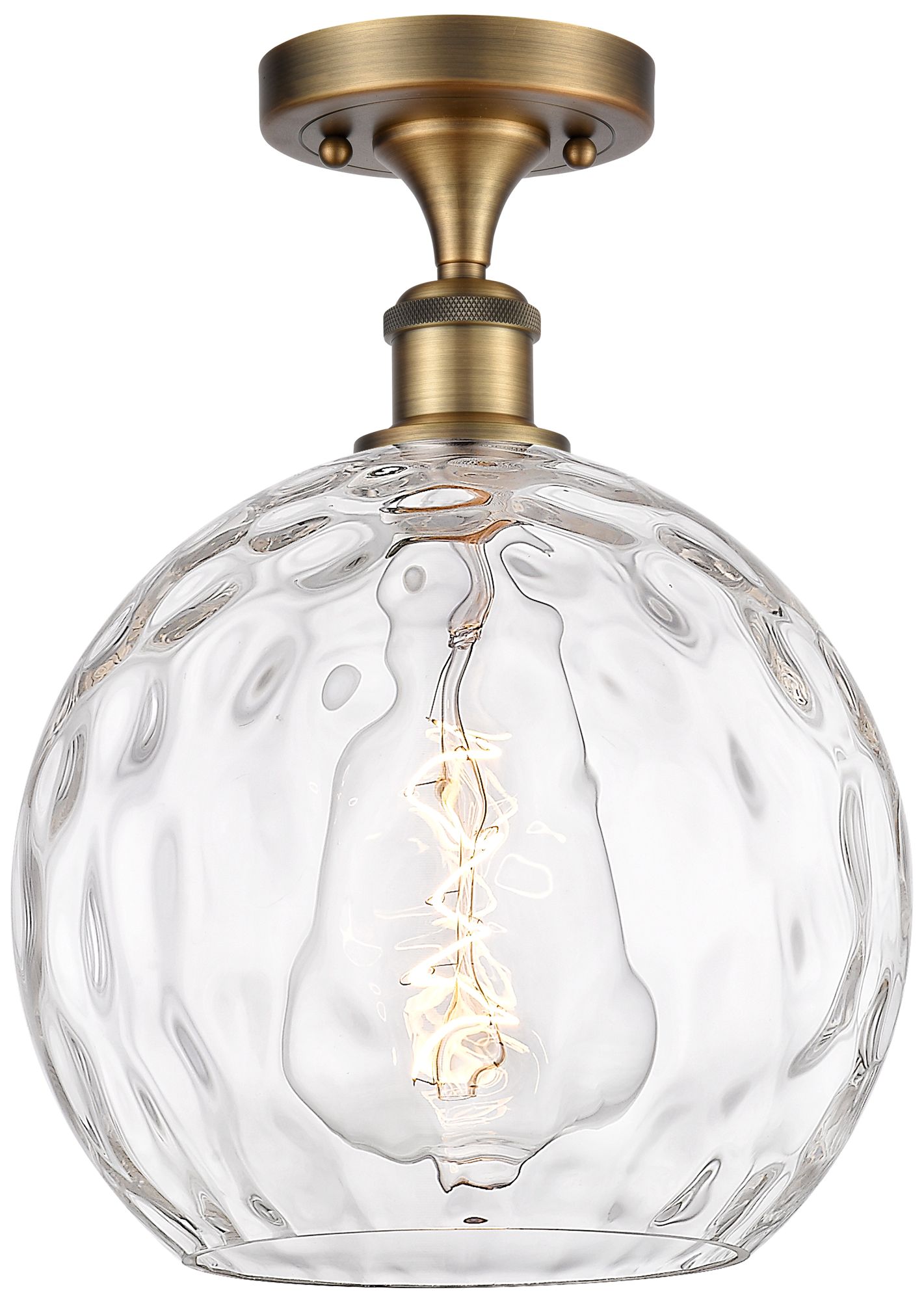Athens Water Glass 10" Semi-Flush Mount - Brass - Clear Water Glass