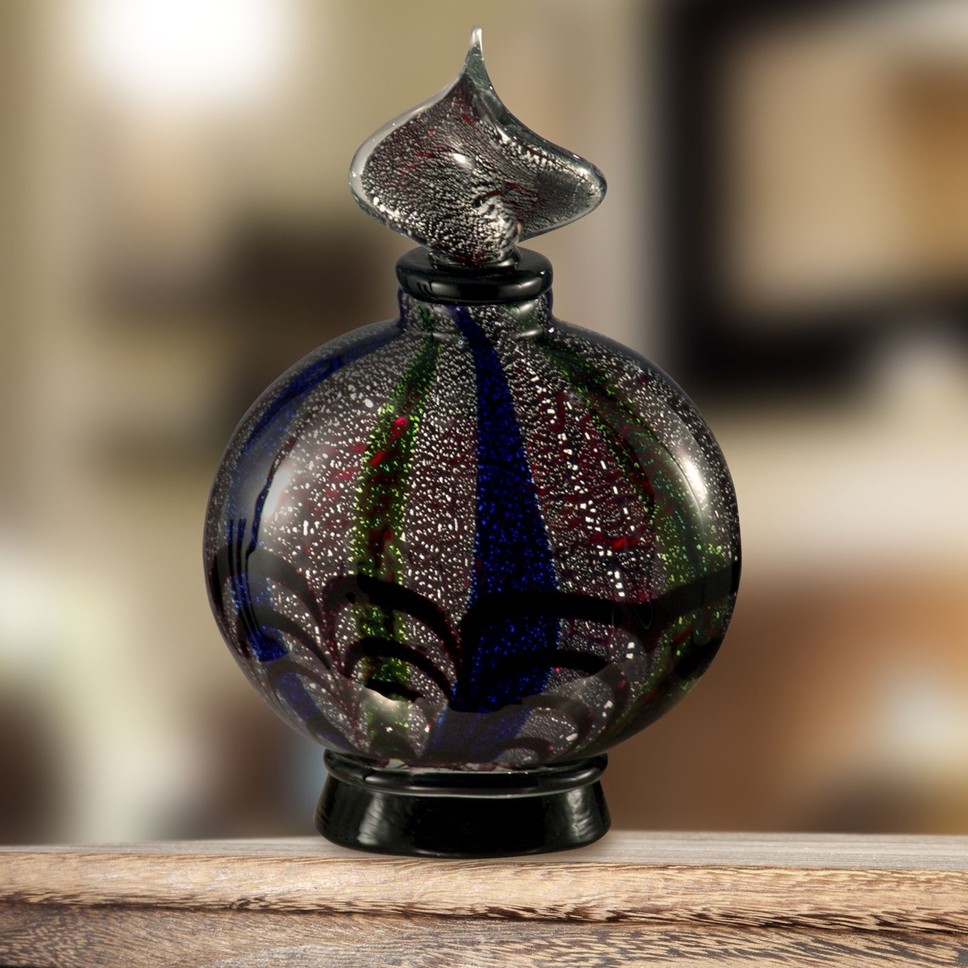 Dale Tiffany 12.25" Tall Black Widow Hand Blown Art Glass Perfume Bottle