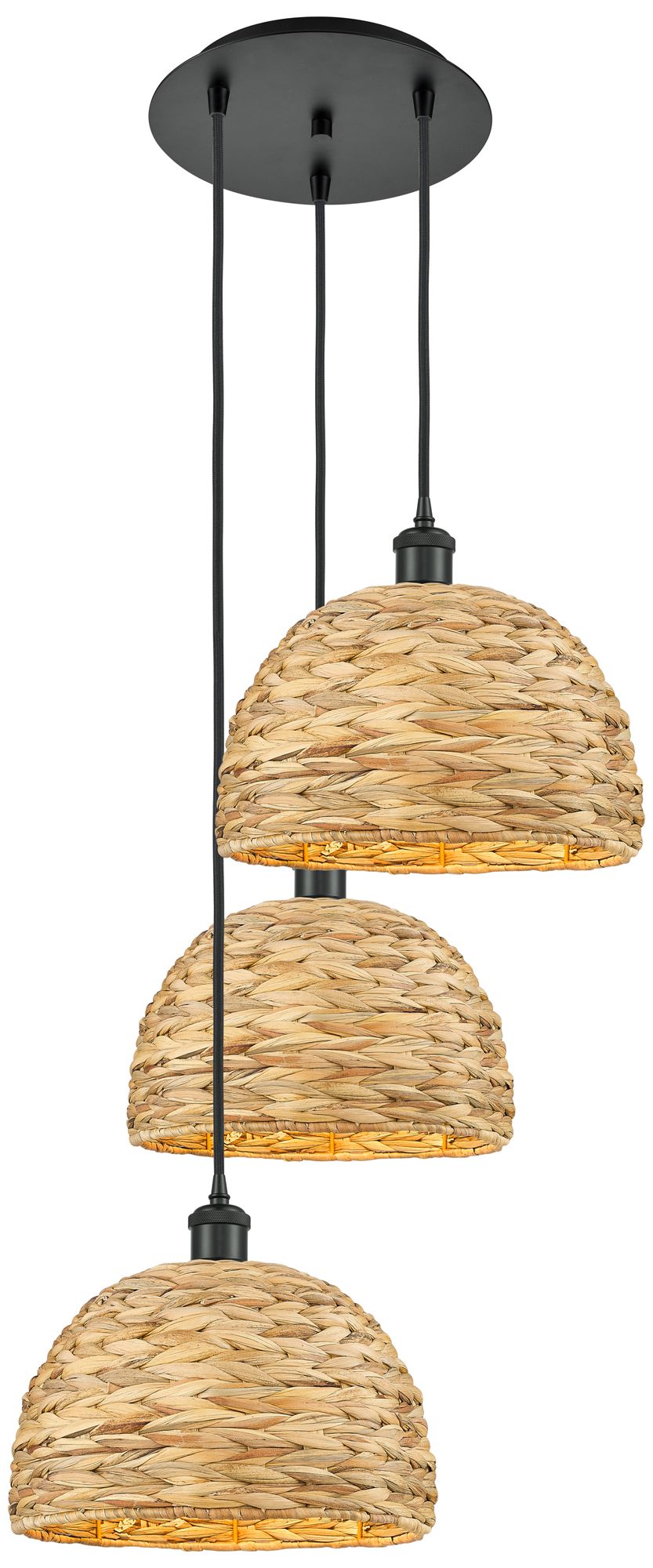 Woven Rattan 18.5"W 3 Light Matte Black Corded Multi Pendant
