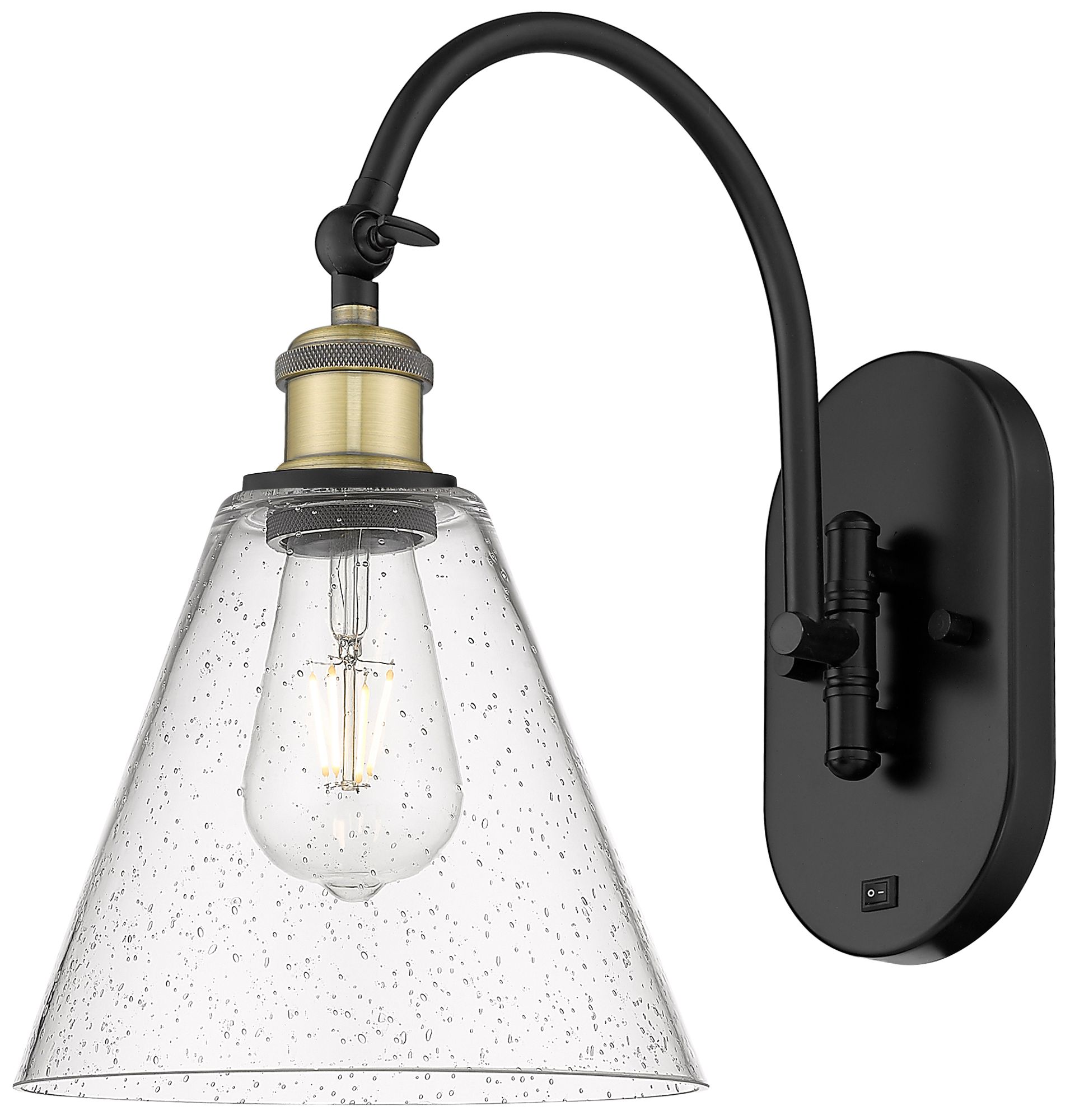 Ballston Berkshire Glass 8" Incandescent Sconce - Black Brass - Seedy