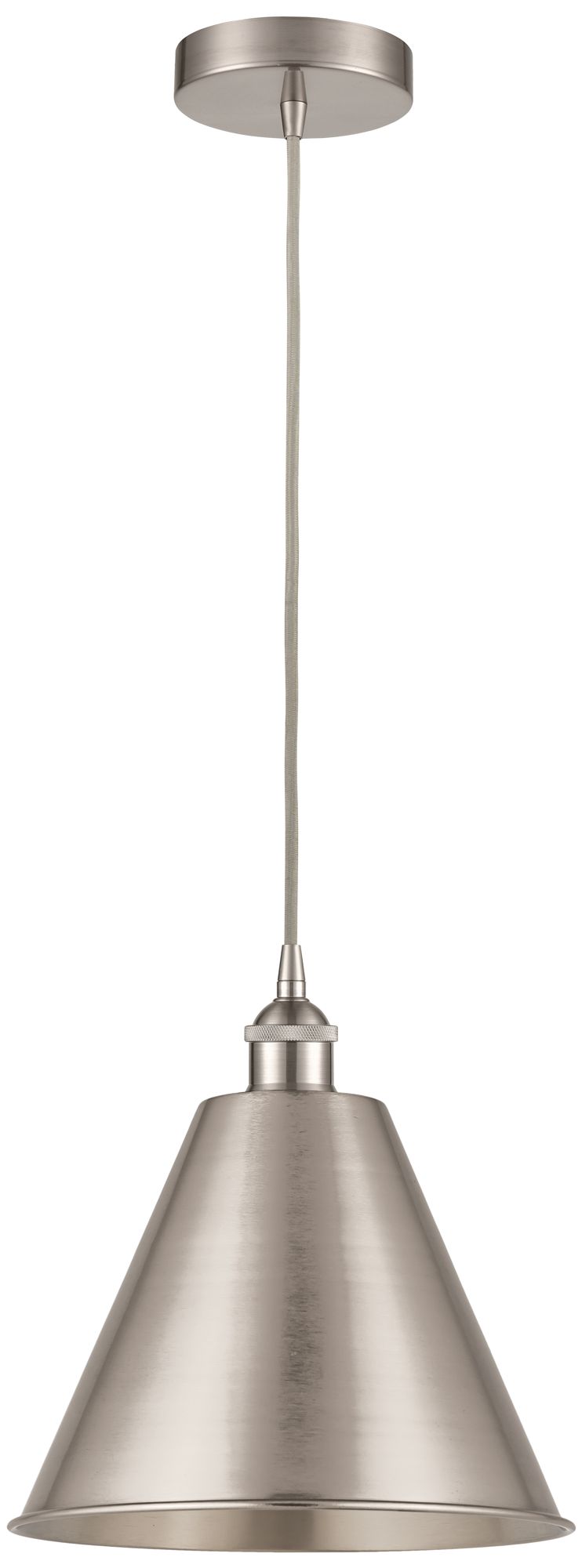 Edison Cone 12"W Brushed Nickel Corded Mini Pendant w/ Brushed Nickel